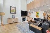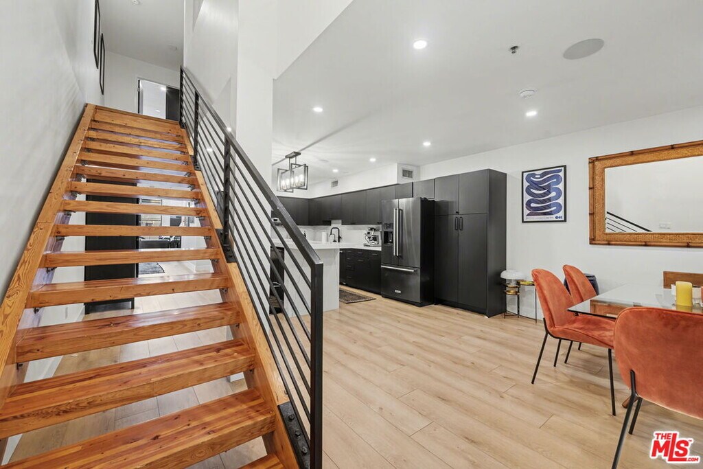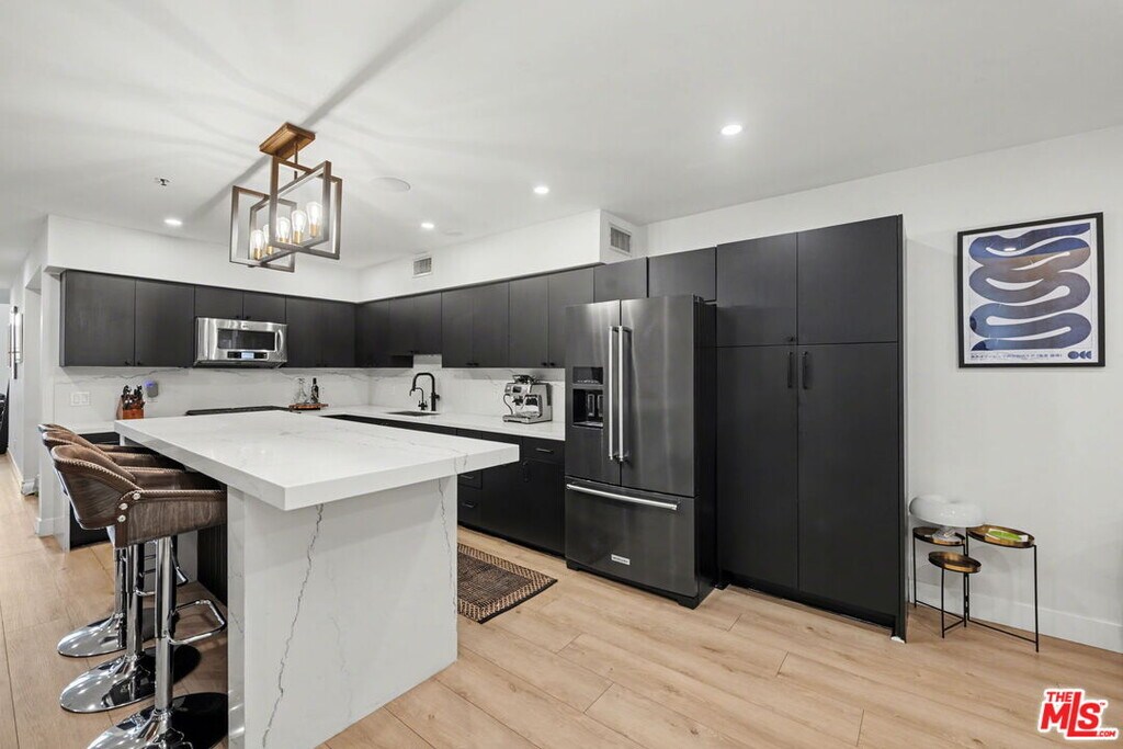 Architecturally striking, fully remodeled 2-bedroom loft-style residence located just off Main Street in the heart of Venice. This light-filled modern condo with a single-family home feel, featuring soaring double-height ceilings, expansive windows, and a seamless indoor-outdoor layout that creates an open and airy living experience. The open living area showcases a sleek fireplace, custom cabinetry, and designer finishes throughout, with large windows that flood the space with natural light and open to a private balcony ideal for outdoor seating and entertaining. The designer kitchen offers sleek custom cabinetry, quartz countertops, stainless steel appliances, and an expansive island perfect for hosting and everyday living. Warm wide-plank wood floors, contemporary architectural details, custom lighting, and thoughtful built-ins create a refined yet comfortable living environment. The upstairs bedroom retreat includes a custom walk-in closet with extensive built-ins and a beautifully updated bathroom. Additional highlights include in-unit laundry, ample storage, and two side-by-side parking spaces in a secure garage.Unbeatable location just a block from Abbot Kinney, moments from Venice Beach, top restaurants, cafes, boutiques, and coastal bike paths. A rare offering combining modern design, functionality, and privacy in one of Venice's most desirable neighborhoods. MLS# 26641243