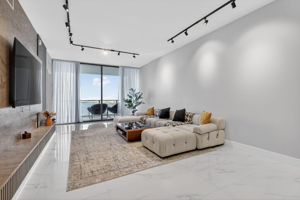 Experience elevated living on the 32nd floor of Aria Reserve. This unit is higher, brighter, and boasts the coveted, full bay view everyone asks for. Offered fully furnished at $11,000/month.This stunning residence features two bedrooms plus a dedicated office and three baths. Enjoy clean finishes, exceptional light, and privacy. Custom upgrades include custom closets, drapes, shades, lighting, and custom cabinets. Parking includes one garage spot and one valet. Move-in ready!Amenities are truly next level: pool, spa, state-of-the-art gym, sports courts, kids' areas, and a private wine cellar. Located perfectly between Midtown, Wynwood, and the beach.Visit today and secure this luxury lease!