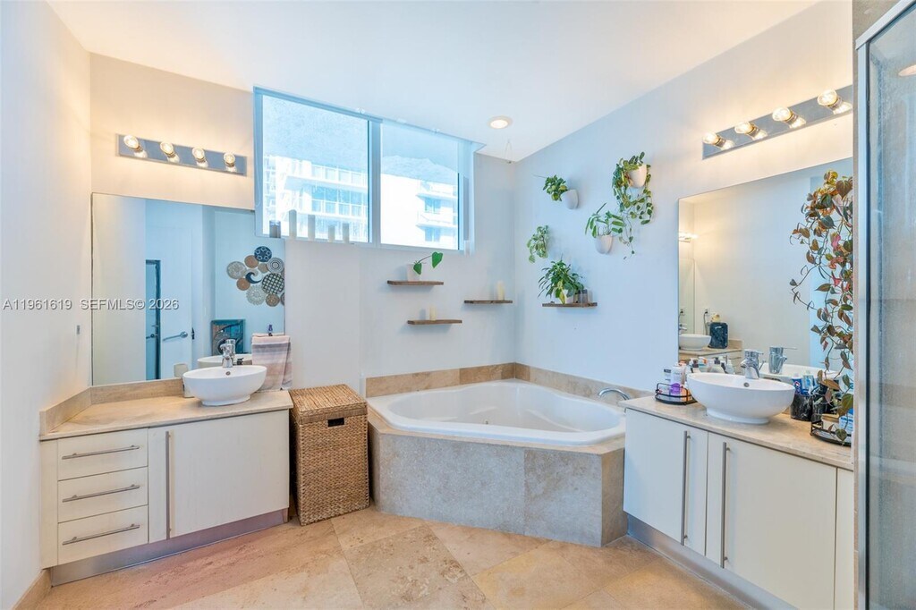 Beautiful condo with fantastic views of bay and Miami skyline. 2 bed / 2 full bath corner unit features dark wood floors throughout, spacious kitchen with granite counter tops, new stainless steel appliances, 14 ft ceilings, huge 850 ft. wrap-around balcony. Master bath with two sinks, marble floors bidet, jacuzzi, and shower. MLS # A11931415
