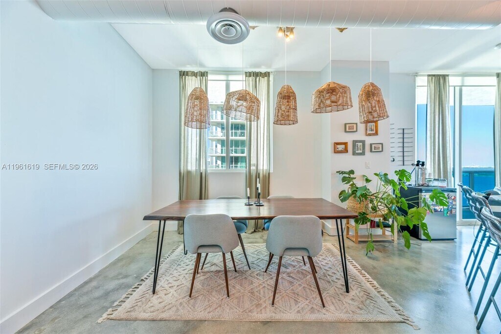Discover the exquisite Star Lofts Residence 1603, nestled in the vibrant Edgewater neighborhood of Miami. Step onto the impressive wrap-around balcony where nearly 1k SqFt of unobstructed panoramic views of the Biscayne Bay, Atlantic Ocean, and the Miami skyline. Inside, you’ll find a spacious and inviting 1,382 SF, 2b/2ba open floor plan, an oversized kitchen and an expansive main bedroom suite. Its loft-styled design boasts 10-foot ceilings, exposed AC ducts & conduits. Star Lofts is a charming boutique building w/only three units per floor, It is also exceptionally pet-friendly, complete with its very own dog park on the 7th floor. Other amenities that Star Lofts has to offer, including a newly renovated infinity-edge pool, an elegant lobby, a fully equipped gym, and convenient storage and bike rooms MLS # A11961619