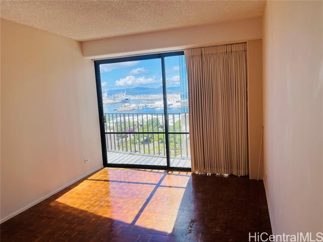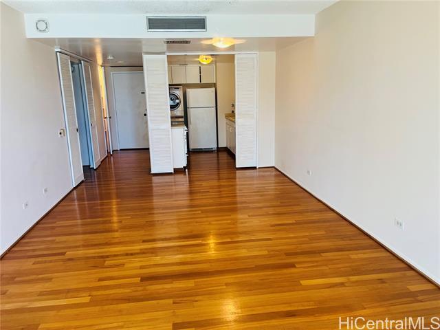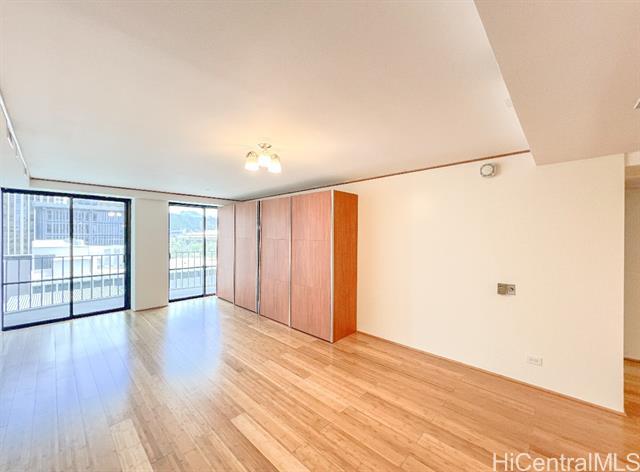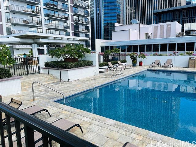 LARGE! (773 SF Interior = 150 SF open lanai for a total of 923 SF) Downtown 1 bedroom 1 bath with 1 parking. Large lanai is on the same floor as the recreation deck. Upgraded kitchen. Extra Storage. Central Air, Cable TV, Wi-Fi, Electricity, Water & Hot Water all included in your rent! Great downtown location, on a quiet Richards St. Across from Aloha Tower, and blocks from the Courthouse and Restaurant Row! No Pets & No Smoking allowed in Building.