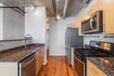 Spacious 1 bed 1.5 bath + den loft in West Loop! This condo features hardwood floors in the living room, floor-to-ceiling windows, and a west-facing private balcony. The updated kitchen includes granite countertops, stainless steel appliances, a gas range, and ample cabinetry. The large primary bedroom can fit a king-size bed, features newer carpets, a large closet and additional shelvings, an ensuite bathroom, and front-loading washer/dryer. The den works as a home office or guest space. Pets friendly. Cable, internet, water & 1 garage parking included. Prime location near Whole Foods, Mariano's, H-Mart, Greek Town dining, public transit, Metra, and easy highway access.