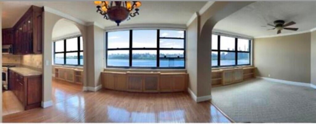 HI-FLOOR 2 BED 2 BATH PLUS SOLARIUM ,APPROX 1350 SQ FT W SOUTHWEST VIEW OF RIVER & EMPIRE STATE BLDG!LGE ENTRY W DEEP WALKIN CLOSET ACROSS FRM BI-FOLD CLOSET,STALL SHOWER BATH,KITCHEN W PASS THRU,LGE LR/DINING RM, 1ST BEDRM OVERSIZED W SOLARIUM,PRMARARY BEDRM HAS WRAP AROUND CLOSETS,2ND BATHROOM HAS FULL TUB/SHOWER.NEW FLOORS AND SMOOTH CEILING ENTIRE UNIT! FRESHLY PAINTED & MOVEIN READY! ALL UTILITIES & AMENITIES INCLUDED IN RENT!MULTI-LEVEL I.D. GARAGE PARKING AVAIL $120. MONTH PER CAR EXTRA! CONVENIENT ON-FLOOR LAUNDRY RM! SMALL PET CONSIDERED! ENJOY RESORT-STYLE" LIFE HERE AT THE GALAXY TOWERS,FEATURING YR'ROUND SWIMMING IN OUR "NEW INDOOR HTD SWIMMING POOL & SEASONAL HTD OUTDOOR POOL,UNWIND IN THE HOT TUB,AND STEAM & SAUNA RMS ,WORKOUT IN "STATE-OF-THE-ART HEALTH CLUB + WEIGHT RMS,PLAY TENNIS OR PICKLEBALL ON OUR "NEW COURTS",BAR.B.Q AREA TOO! WORK REMOTELY IN OUR SPA LOUNGE W "FREE WI-FI"!E-Z COMMUTE"