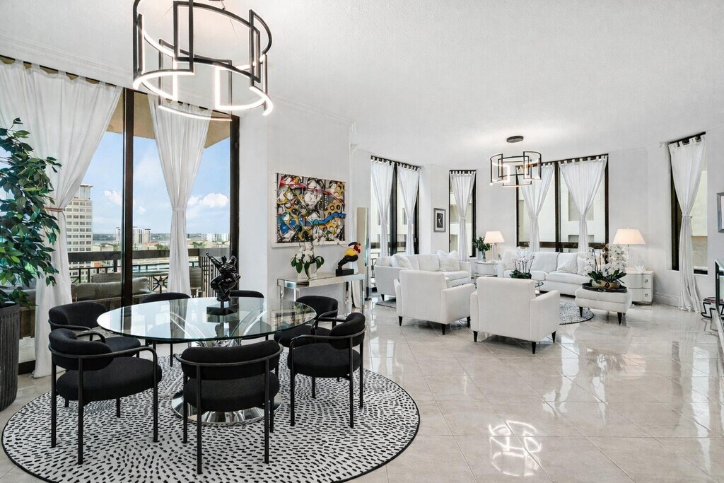 This 3 Bedroom & 2.5 Bathroom luxury corner condo boasts breathtaking panoramic skyline & sunset views over Clear Lake! Dramatic floor-to-ceiling windows,high ceilings,dedicated foyer,full-size upgraded laundry room,and parking on low ''M'' level are just a few of the features that separates this spacious 1858sqft luxury condo. In addition,hardwood,marble & tile flooring throughout,incredible closet space,crown-molding,tray ceilings,light granite counters in gourmet kitchen. Fully furnished turnkey with stunning finishes to truly enjoy your summer season in luxury. Located just moments from dining,shopping,nightlife,and cultural attractions,Two City Plaza offers full-service,resort-style amenities in one of downtown's most desirable addresses. Amenities in this full-service building are endless; 24-hr security,concierge,roof top pool,hot tub,sauna,steam room,fully renovated state of the art fitness center/gym,outdoor kitchen w/ BBQ area and all NEW Restoration Hardware furniture,outdoor & indoor movie theaters,club room,table tennis,lanai courtyard w/ water feature,renovated roof top dog park area,complimentary valet parking & exceptional staff. Centrally located in the heart of Downtown West Palm Beach,across from One Flagler offices,7 minutes to PBIA airport,award winning restaurants and shopping,and walking to Worth Ave,Palm Beach. MLS ID R11167818