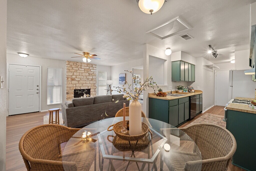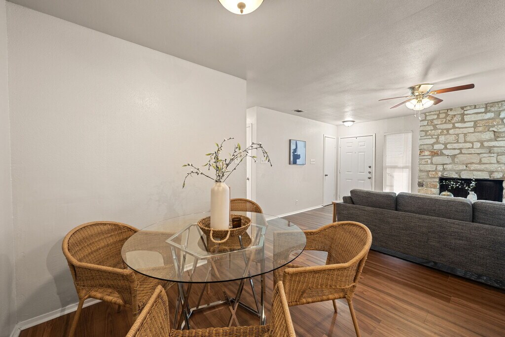 Welcome to your new home in the heart of RR feeding to Stony Point H.S.! This delightful duplex boasts 3 bedrooms, 2 bathrooms & a convenient 1-car garage, offering ample space for comfortable living & storage. As you step inside, you'll be greeted by brand new luxury vinyl plank wood-like flooring throughout, a spacious living room adorned with a charming floor-to-ceiling stone wood-burning fireplace, perfect for cozy evenings. The kitchen features tasteful updates including custom painted cabinets, gas oven range, dishwasher, refrigerator, pantry & w/d hook-ups. Whether you're preparing a quick breakfast or hosting a dinner party, this galley-style kitchen provides both style & functionality with an eat-in dining area. Access to the back patio is through the kitchen with your own private fenced backyard, where you can relax, entertain, or simply soak up the sunshine in peace. Nestled in the sought-after R.R.I.S.D., this property has access to top-rated schools. Beyond the neighborhood, explore the vibrant community of Round Rock, offering lush parks, diverse shopping options, and a plethora of dining experiences just minutes away. This charming home boasts a prime location with close proximity to Bowman Park, Old Settlers Park, and Stony Point High School. Enjoy the convenience of nearby recreational spaces and quality education, all within a short distance from your new home. With easy access to major highways, commuting to nearby Austin is convenient, making it effortless to enjoy the excitement of the city while still savoring the tranquility of suburban living. MLS ID 6937093