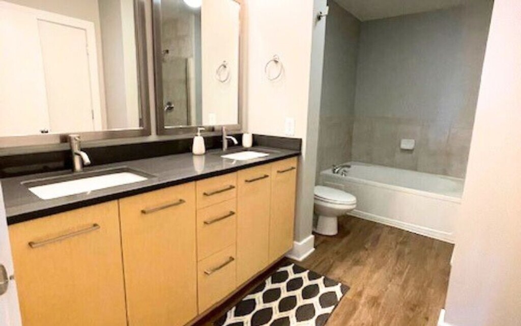 Feel at home in this apartment located within walking distance of the Town Brookhaven community. This apartment features hardwood floors throughout and granite countertops in the kitchen and bathroom. It offers a rustic look with exposed duct work and a traditional layout. Enjoy the large walk-in shower and garden-style tub. Garage parking is available on the same level as the apartment. With an abundance of restaurants and shopping within walking distance, there’s never a shortage of entertainment. Residents can enjoy the zero-entry pool complete with grill stations, a two-story health and fitness studio, and a cyber café and coffee bar. A rooftop terrace is also available.