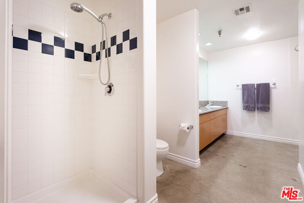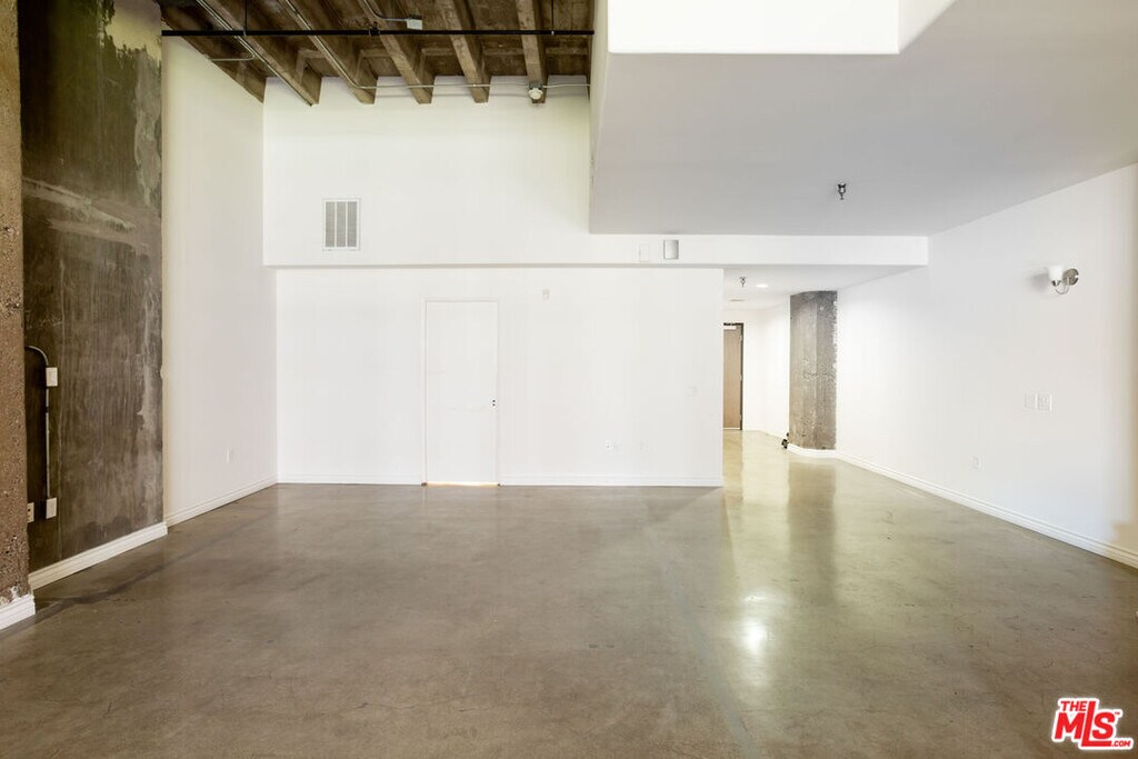 Originally a Los Angeles department store beautifully converted into live/work loft apartments with 14 foot ceilings, exposed concrete support columns and ceilings. Updated with modern stainless steel appliances. Each unit has a full size washer and dryer. Full bath with separate shower stall plus powder room. Lots of closet space. Rooftop deck with city views includes a Barbecue Grill. Secure underground parking is available. Centrally located near Whole Foods, Los Angeles Athletic Club, Per LA Hotel and Metro Station. This unit is an open floor plan. Easter exposure with city lights view. Inside photos representative of appliances and finishes, may not be for this specific apartment. Shown by appointment only. MLS# 26648975