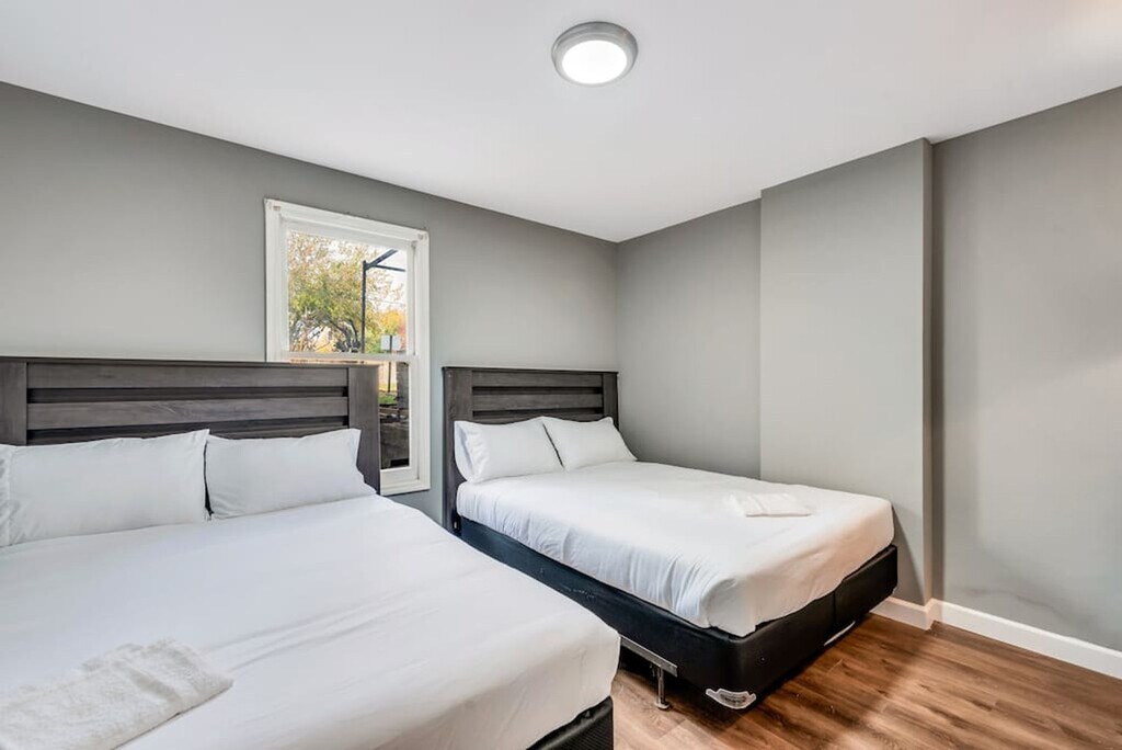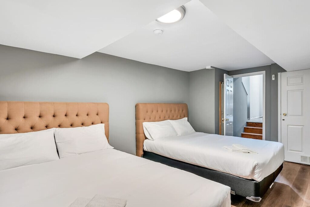 Feel at home in this newly furnished two-story townhome, perfect for small and large groups looking for a hassle-free trip to St. Louis. This property features 3 bedrooms, 6 queen beds, and two full bathrooms. Private parking is available. Its central location and close vicinity to public transportation make getting to all of St. Louis hassle-free. Located in Soulard, one of the fastest-growing and most lively areas of St. Louis. Locals are not hosted, and any bookings made by locals will be automatically canceled. Absolutely no parties or events are allowed, and if you are found to have a party or more people are in the unit than you list on your reservation, you accept full responsibility for any city fines or lawsuits resulting from your actions or your guests' actions during your reservation. Checkout is at 11 am, and for every half hour you or your group is not checked out of the unit, you will be charged $100. Check-in is at 4 PM, and you will receive instructions to check in 1 hour prior to the check-in time on the day you arrive. No smoking is allowed, and if there is a smell of any kind of smoke in the property, deodorizing fees start at $500 and will be charged back to the guest. If a noise complaint is received, the police will be called immediately. The Nest thermostats are locked so that they cannot be adjusted outside the range of 68 – 78 degrees in the Summer and 60 – 72 degrees in the Winter. There may be candles in the suite, but they are for decoration only and should not be lit. Maximum occupancy is the number of guests you indicated on your reservation, and if it is found that there are more guests than indicated on the reservation, you will lose 100% of your security deposit. Please leave the suite how you found it with all of the dishes cleaned and put back as well as trash taken out before your departure. There is great Wi-Fi on the property, but it cannot be guaranteed to be working 100% of the time. No moving furniture, even temporarily, and if furniture is moved and has to be put back in its original place, it costs $100 per piece of furniture that needs to be put back. Firearms and other weapons are prohibited on or near the property. [SI]