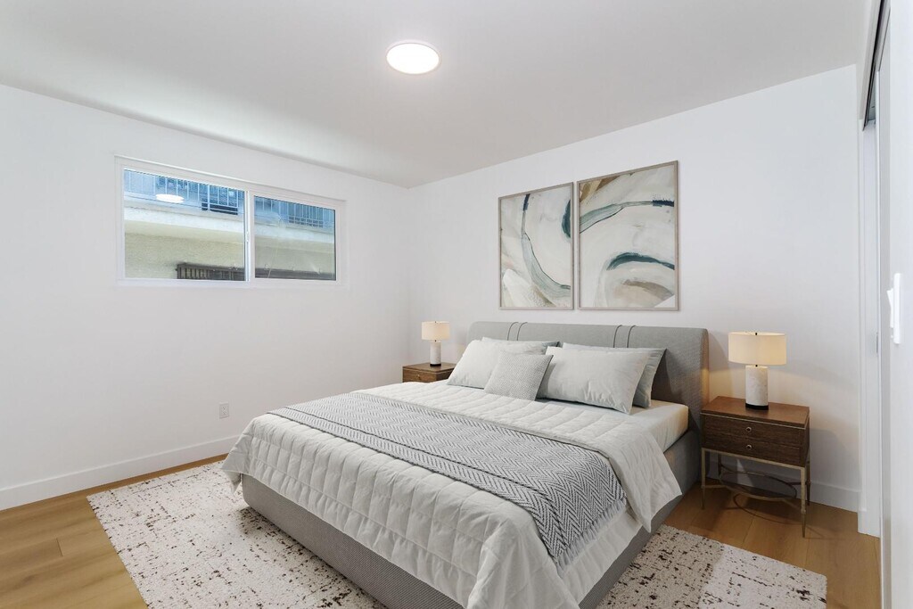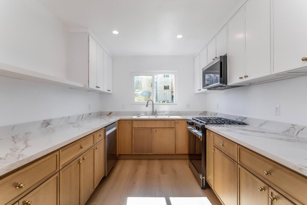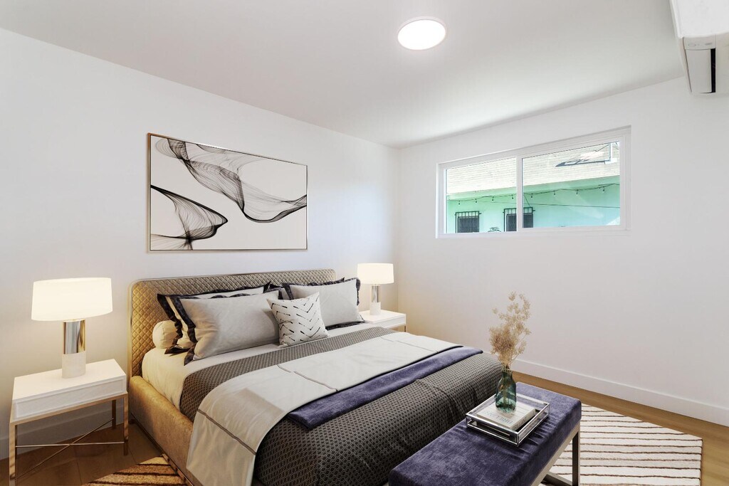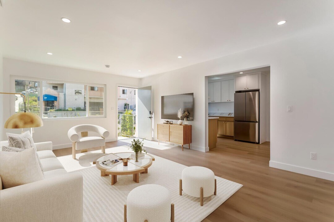 Brand New Top-Floor Designer 2BR w/ Balcony + In-Unit Laundry | Boutique Living at The Jade — Echo Park / Chinatown.This thoughtfully designed top floor unit featuring windows on 3 sides with a balcony that lets light pour in and only 1 common wall. Enjoy wide-plank oak flooring, smart digital locks with keyless entry, and brand-new stainless steel appliances paired with Calacatta quartz countertops, custom oak cabinetry, and elegant brass hardware. Custom roller shades provide privacy, while in-unit laundry and pre-wiring for high-speed internet with a concealed media panel add everyday convenience. Two spacious bedrooms offer generous closets, complemented by a modern bathroom featuring an oak vanity with brass finishes and additional hallway storage. Enhanced acoustic sound barriers beneath the flooring and along shared walls create a quieter living experience, while live-recorded security cameras at all access points and within the parking garage offer added peace of mind....