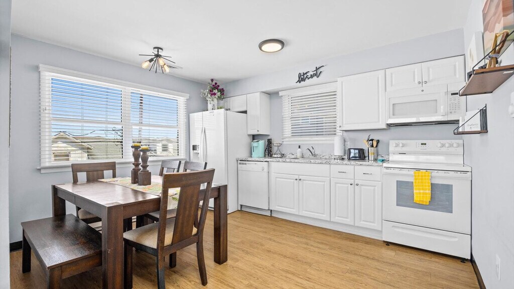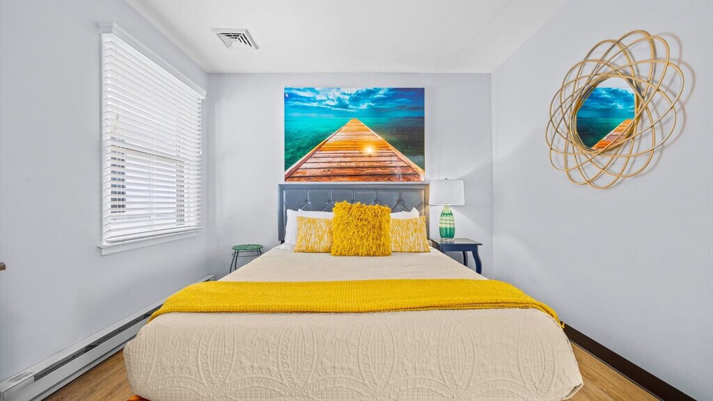Escape to this charming 2-bedroom condo in Ocean City, perfect for families or groups! Feel at home in this shore getaway. This apartment offers a fully equipped modern kitchen with all cookware and dishes, toaster, blender, Keurig coffee maker, and ample counter space. The open-concept living area features plush seating, a large TV, and plenty of natural light. Enjoy the convenience of Wi-Fi and a washer and dryer in the unit. Linens, towels, essential amenities, shower products like body wash, shampoo and conditioner, bedding, and a full set of bath towels are provided. This home is equipped with central heating and air. Seven beach tags are conveniently collected on a lanyard, and seven beach chairs are provided. Located just steps away from the Atlantic Ocean, this neighborhood boasts breathtaking views and easy access to the sand and surf. You'll find plenty of local restaurants, shops, and attractions just a short drive away. Getting around is a breeze with ample free and metered street parking in the neighborhood. The Atlantic City International Airport (ACY) is approximately a 1-hour drive away. Public transportation options, including local buses, are readily available, providing easy access to Ocean City's attractions and surrounding areas. Quiet hours are between 10 pm and 8 am. Guests must be respectful of neighbors and other guests at all times. Any disturbance incident that results in police involvement may result in the immediate termination of a reservation and removal from the rental without refund or warning. All guests are required to upload a valid photo ID and verify with a “selfie” to the management company's secure, data encrypted portal before being allowed to check in. There are security cameras present on this listing in the following locations: exterior front entryway/doorbell camera, exterior rear entrance and deck/patio/driveway area. These cameras may record audio and video footage 24/7. All properties are absolutely no smoking of any kind, including cigarettes, cannabis, vapes/e-cigs, etc. Any evidence of smoking will be automatically billed an additional cleaning fee. Guests are fully responsible for any damage, excessive cleaning, or disturbances caused by their pets during their stay. Guests with pets are 100% responsible for keeping their pet under control at all times. Size/weight and breed restrictions may apply. For listings marked “no pets,” this is strictly enforced. If you have a service animal, please book one of the pet-friendly listings. [SI]