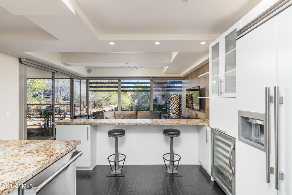 Fully furnished and move-in ready,this stunning 3-bedroom,2-bath condo at Optima Camelview offers the ultimate Scottsdale lifestyle. Floor-to-ceiling glass fills the open living spaces with natural light,while the sleek kitchen boasts premium finishes and modern appliances. The primary suite is a private retreat with a spa-like bath,complemented by two versatile guest rooms. Relax on your private balcony overlooking Optima's lush gardens and iconic architecture. Enjoy world-class amenities including indoor & outdoor pools,state-of-the-art fitness center,concierge,and moreall just steps from Scottsdale Fashion Square,fine dining,and entertainment. Perfect as a seasonal escape or full-time residence.