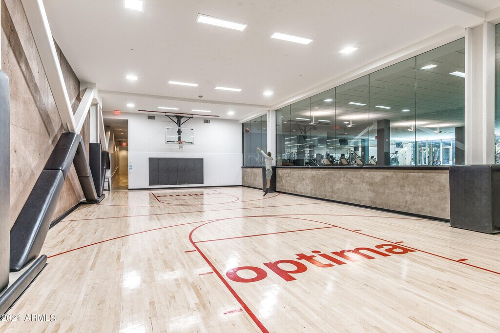 Location!!! Location!!! Luxury Amenities all within walking distance of world class restaurants,shopping and nightlife! This is a beautiful 2 bed/2 bath featuring an open floor plan design with a balcony that has interior courtyard views. The primary suite has a huge walk-in closet,there is a large living area with a gas fireplace,second bedroom,separate office space and flexible space for dining. The Optima has resort like amenities with two outdoor pools,an indoor lap pool with spas,steam saunas,indoor basketball and racquetball courts,pickle ball court,a putting green,a cutting-edge fitness center,full-time concierge,business center,and an on-site restaurant. Water and Direct TV included.