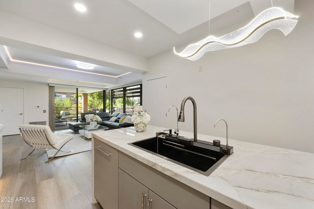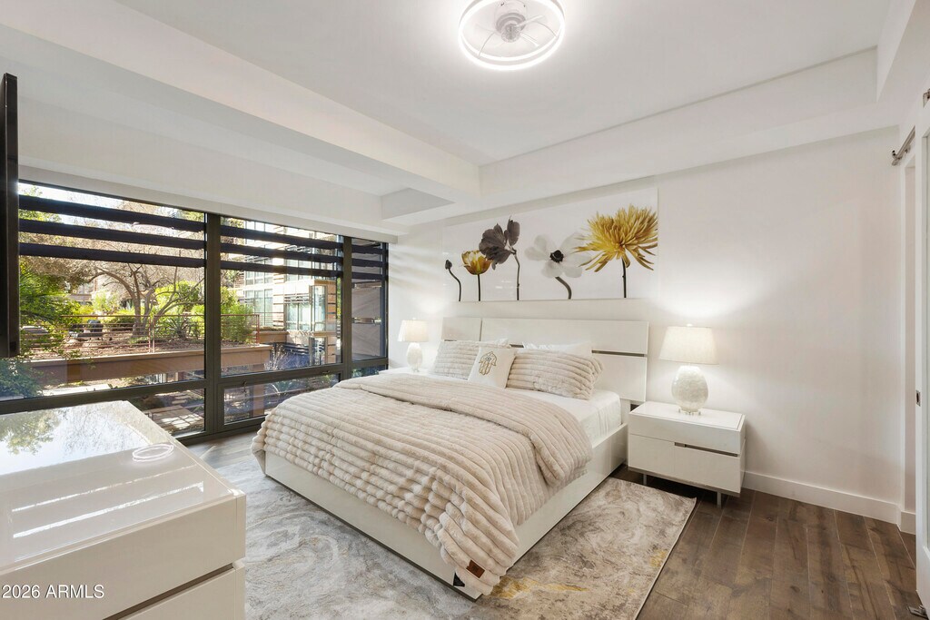 Completely renovated condo in the prestigious Optima Camelview Village! This rare gem boasts a spacious patio with a private barbecue and fire pitperfect for entertaining. Conveniently located near the elevator,it features high-end appliances,a wine fridge,cozy fireplace,and more. All new furniture. Just steps from Fashion Square Mall and within walking distance to upscale bars and restaurants,this unique condo offers the ultimate in luxury and convenience. Don't miss this exceptional opportunity!