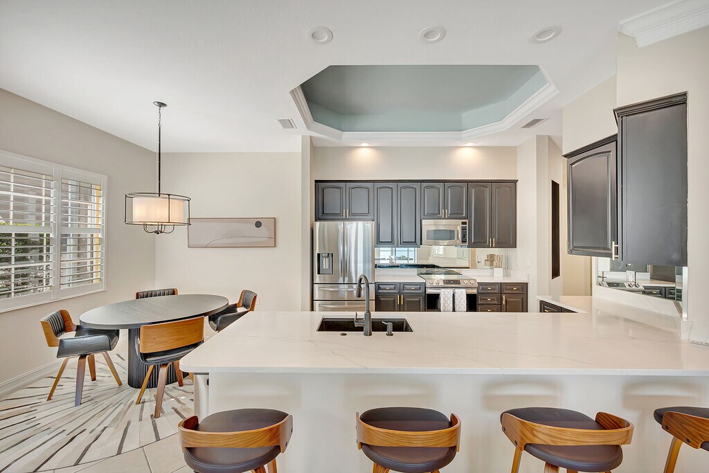 ANNUAL RENTAL available now - PET-FRIENDLY with approval. Bike to Mercato or Vanderbilt Beach from this 3-bedroom 3 bath coach home ideally situated in the gated North Naples community of Lemuria. Located off of Goodlette Road,south of Vanderbilt Beach Road,this 2,400 sf,first floor condo with an attached two-car garage and 10' ceilings,is available UNFURNISHED or PARTIALLY FURNISHED and lives like a single-family home. Take in the lake and fountain view from the Screened Lanai,Great Room,Kitchen and Dining Nook. The Primary Bedroom Suite enjoys the same lake view,two walk-in closets and a large en-suite bath with a walk-in shower,soaking tub,dual vanities and a private water closet. The other two bedrooms are near the front of the home - one with its own en-suite bath with a shower,and the other with a nearby bath that has a shower/tub combination. All bedrooms are carpeted,but the remainder of the home is tiled. There is also a unique carved out space surrounded by low bookshelves which can be used as a home-office,playroom or formal dining area - make it your own! Other wonderful offerings include a breakfast bar,a large kitchen pantry,built-in desk space,a dedicated laundry room,and a large walk-in storage closet for suitcases and other "stuff". Lemuria is a gated community with a small but well-outfitted clubhouse with a catering kitchen,party room,card room and fitness center. There is also a heated pool and spa,a grill area,and tennis courts.