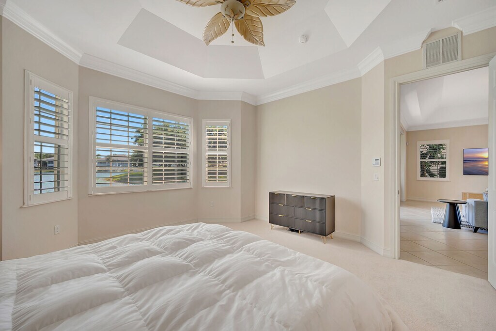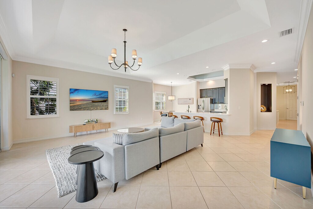 ANNUAL RENTAL available now - PET-FRIENDLY with approval. Bike to Mercato or Vanderbilt Beach from this 3-bedroom 3 bath coach home ideally situated in the gated North Naples community of Lemuria. Located off of Goodlette Road, south of Vanderbilt Beach Road, this 2,400 sf, first floor condo with an attached two-car garage and 10' ceilings, is available UNFURNISHED or PARTIALLY FURNISHED and lives like a single-family home. Take in the lake and fountain view from the Screened Lanai, Great Room, Kitchen and Dining Nook. The Primary Bedroom Suite enjoys the same lake view, two walk-in closets and a large en-suite bath with a walk-in shower, soaking tub, dual vanities and a private water closet. The other two bedrooms are near the front of the home - one with its own en-suite bath with a shower, and the other with a nearby bath that has a shower/tub combination. All bedrooms are carpeted, but the remainder of the home is tiled. There is also a unique carved out space surrounded by low bookshelves which can be used as a home-office, playroom or formal dining area - make it your own! Other wonderful offerings include a breakfast bar, a large kitchen pantry, built-in desk space, a dedicated laundry room, and a large walk-in storage closet for suitcases and other "stuff". Lemuria is a gated community with a small but well-outfitted clubhouse with a catering kitchen, party room, card room and fitness center. There is also a heated pool and spa, a grill area, and tennis courts.