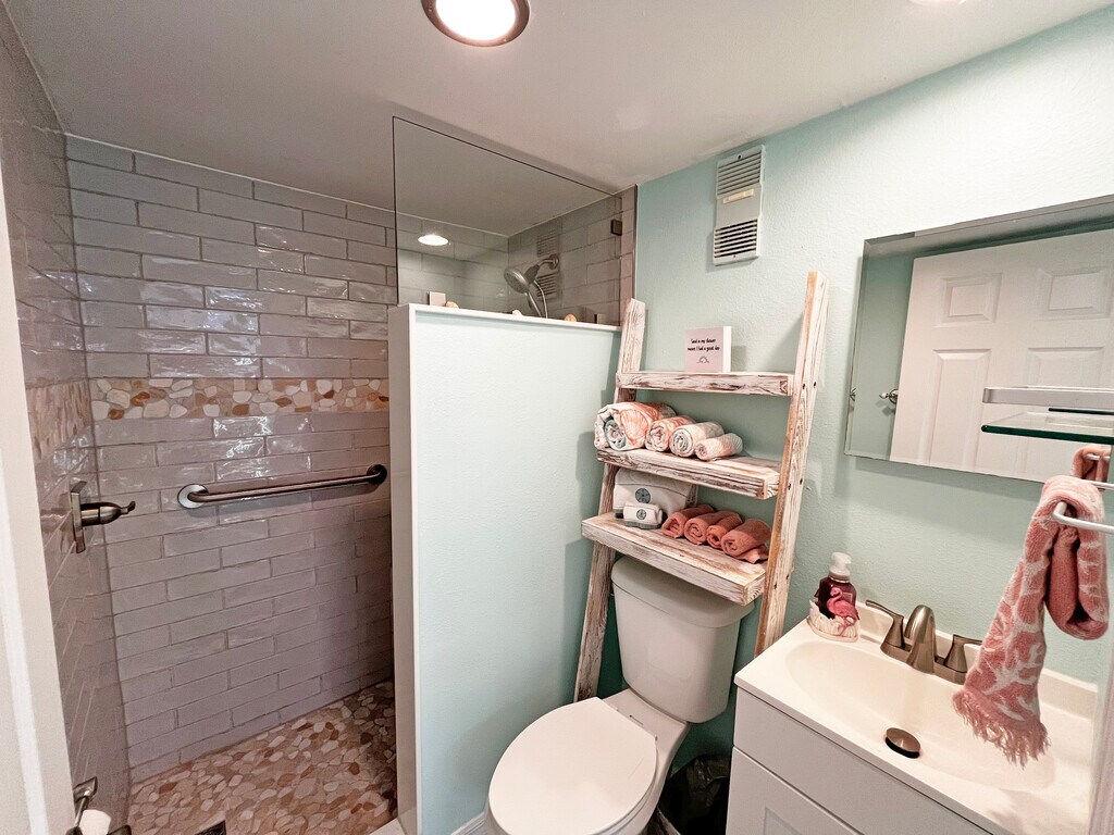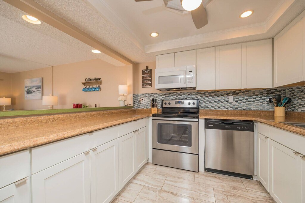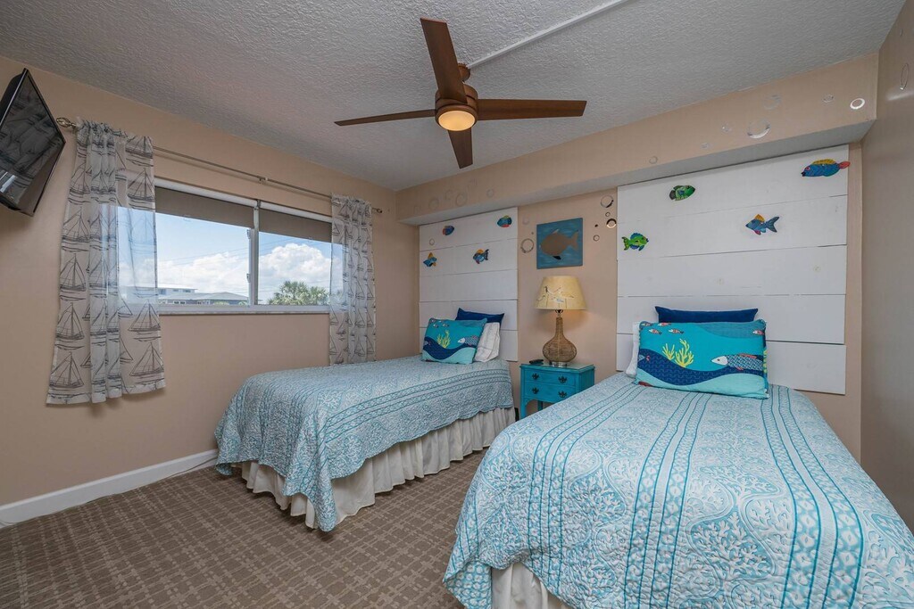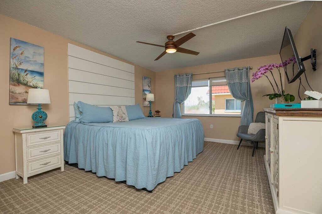 Welcome to your charming 2-bedroom, 2-bath condo retreat in St. Augustine, where you'll feel at home. This beautifully decorated condo is perfect for up to six guests, offering a relaxing atmosphere and easy access to the beach and local attractions. Designed for comfort and convenience, the inviting living room features a comfortable couch and a flat-screen TV, ideal for movie nights after a day in the sun. The fully stocked kitchen includes a microwave and coffee maker, along with a large walk-in pantry with cookware, utensils, and a spice rack. Wireless internet is available throughout the condo. Linens and bath towels are provided for your convenience, and a full-size washer and dryer are available for fresh laundry during your stay. One small dog is allowed with an additional pet fee. Small-boat parking is available on-site near Building A. The condo is located directly across the street from beach access. The Intracoastal Waterway boat ramp is just down the block, making it easy to enjoy water activities. Nearby attractions include Castillo de San Marcos, St. Augustine Lighthouse & Maritime Museum, The Old Jail, St. George Street, Flagler College, The Lightner Museum, and The Fountain of Youth Archaeological Park. Quiet hours are between 10:00 PM and 8:00 AM. [SI]