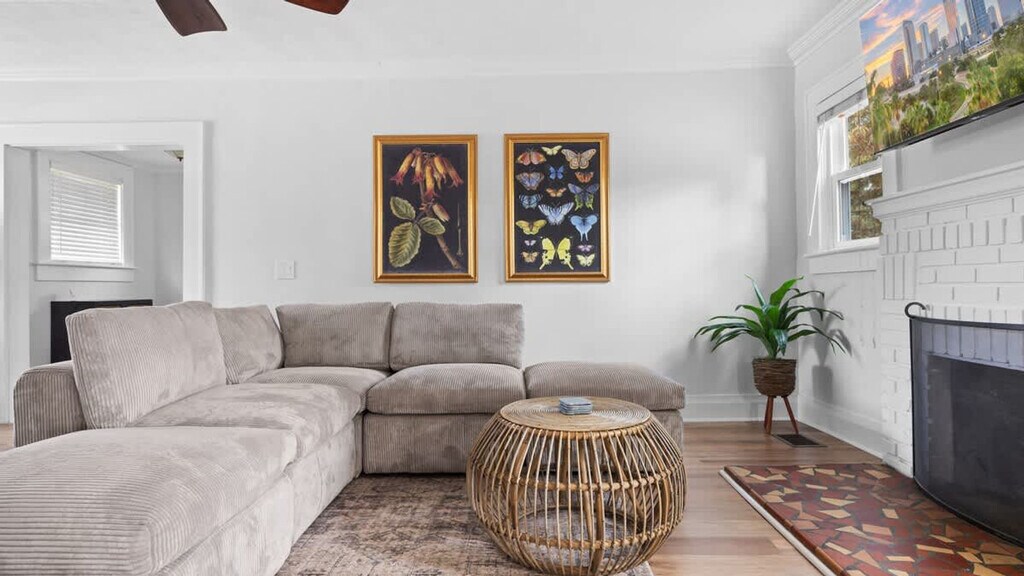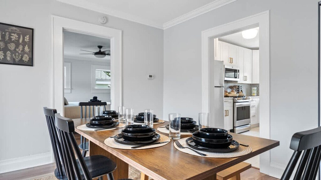 Welcome to The Heights Homestead, your upscale yet charming retreat in the heart of Tampa! Feel instantly calm as you enter this tranquil and peaceful 4-bedroom home, featuring a large, fully stocked kitchen, full-sized washer and dryer, work-from-home office space, outdoor grill for BBQing, abundant natural light, and a private back porch deck to enjoy your morning coffee. Whether you're here for a family vacation, a business trip, or a getaway with friends, this 4-bedroom gem promises an unforgettable experience. Immerse yourself in an oasis of calm, where modern luxury seamlessly meets the peaceful charm of farmhouse living. The Heights Homestead features a comfortable living room, chef’s dream kitchen, dedicated office workspace, spacious bedrooms, and an expansive backyard perfect for unwinding with a good book. Each of the four bedrooms is thoughtfully designed for comfort and tranquility. The bathrooms provide shampoo and conditioner, body wash, hair dryer, and extra towels, ensuring you’re fully set up for a perfect stay. Enjoy a game night with fun board games available in the sideboard, or step outside into the spacious backyard oasis, perfect for BBQs, evening gatherings, or simply enjoying the Florida sunshine. The property includes a dedicated parking spot in the driveway. For those traveling with children, there is an incredible set-up including a Pack N’ Play, sheet set, baby bath, changing table, high chair, and silicone plate, fork, and spoon. A dedicated coffee bar is available with a Keurig, black coffee maker, milk frother, stovetop tea kettle, and stocked coffee pods, creamer, and sugar. Located in the highly sought-after historic district of Seminole Heights, this home is nestled in a quiet neighborhood with cobblestone streets, perfect for an evening stroll to a local restaurant or bar. Seminole Heights is known as the foodie district of Tampa and is central to all Tampa has to offer. Guests can easily walk to local restaurants, coffee shops, and bars. Downtown, Channelside, The Port, Armature Works, Straz Center, Amalie Arena, and the Lowry Park Zoo are just a five-minute drive or Uber ride away. The Tampa International Airport, Busch Gardens, International Mall, and Raymond James Stadium are about a 10-15 minute drive or Uber ride, depending on traffic. There are 3 small stairs to enter and exit this home, which may affect those with special accessibility needs. The home is on a large lot with a mother-in-law guest house located behind it, but you’ll have complete privacy as you are booking the main 4-bedroom house. Access the home with a personal smart lock code sent after booking. Quiet hours are from 11 PM to 8 AM both inside and outside to respect neighbors. Smoking inside the home is prohibited, and any evidence of smoking, including vapes, will result in a fee for odor removal, duct cleaning, and furniture cleaning. Parties or events are not allowed unless previously approved, and guests are asked to treat the home as their own to preserve its pristine condition. Includes a dedicated office and workspace for those working remotely, with high-speed Wi-Fi to ensure a seamless work-from-home experience. A laptop computer is not included. [SI]