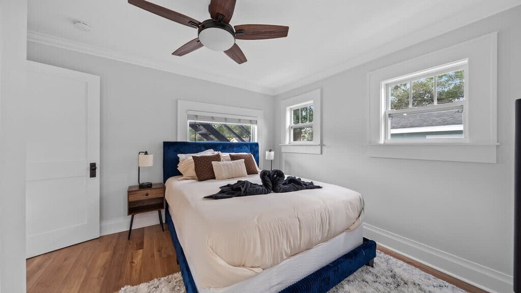 Welcome to The Heights Cottage, your upscale yet extremely charming retreat in the heart of Tampa! Experience the perfect blend of modern luxury and farmhouse warmth in this 1-bedroom home. Feel instantly calm as you enter into this tranquil and cozy space, featuring a fully stocked kitchen, washer and dryer, work-from-home office space, tons of natural light, and a private screened-in back porch to enjoy your morning coffee. The Heights Cottage is a great match for a solo or couples trip looking to get away from the regular day-to-day hustle. Rest, recharge your batteries, and enjoy the Florida sunshine during your stay! This home features a comfortable living room, fully stocked kitchen, loaded coffee bar, workspace, spacious bedroom, and private screened-in back porch perfect for unwinding with a good book. The bathroom provides shampoo and conditioner, body wash, hair dryer, and extra towels, so you’ll be fully set up for a perfect stay. Enjoy some fun board games in the dresser for a game night or step outside into the screened-in back porch or the spacious backyard oasis for a little me time in the Florida sunshine. The property includes a dedicated parking spot in the driveway. For those traveling with children, the home is equipped with a Pack N’ Play, sheet set, high chair, baby bath, changing table, and silicone plate, fork, and spoon. Located in a quiet neighborhood, this modern farmhouse is conveniently close to Tampa's attractions, restaurants, and vibrant nightlife. Situated in the highly sought-after historic district of Seminole Heights, the quiet cobblestone streets make the perfect place for an evening stroll to a local restaurant or bar. Seminole Heights is known as the foodie district of Tampa and is central to all Tampa has to offer. Guests can walk to local restaurants, coffee shops, and bars very easily, with a 3 to 10-minute walk depending on the destination. A 5-minute drive or Uber ride will take you to Downtown, Channelside, The Port, Armature Works, Straz Center, Amalie Arena, or the Lowry Park Zoo. The Tampa International Airport, Busch Gardens International Mall, or Raymond James Stadium are about a 10-15 minute drive or Uber ride away, depending on traffic. Florida is tropical, and in such an environment, local wildlife, including insects, is common. The home is well maintained and treated regularly to reduce bug encounters, but occasional bugs may appear. The home is on a large lot with a main home located in front of it, providing complete privacy as it is completely detached from the main home, but there is another rental house on the property. Enter with your personal smart lock code sent after booking. Quiet hours are from 10:00 PM to 8:00 AM. No smoking inside; any evidence of smoking, including vapes, will result in a fee for odor removal, duct cleaning, and furniture cleaning. No parties or events are allowed unless previously approved. Be considerate of neighbors, especially when smoking on the deck or hanging out outside, and maintain quiet hours. The workspace is ideal for those working remotely, featuring high-speed Wi-Fi and a comfortable set-up. A laptop computer is not included. [SI]