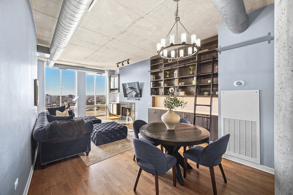Welcome to this sophisticated high-floor 2-bedroom,2-bath condo at Two River Place in the vibrant River North neighborhood. This residence boasts breathtaking river views and abundant natural light,creating an inviting atmosphere. The open kitchen features recently updated cabinets,countertops,backsplash,and newer stainless steel appliances,making it perfect for entertaining. With a desirable split floor plan that ensures privacy,you'll appreciate the spaciousness created by the impressive 10-foot ceilings and floor-to-ceiling windows that offer unobstructed west exposure for spectacular sunset views. Step out onto the huge private balcony off the living room for outdoor relaxation,or unwind in the expansive living room,complete with a designated dining area,gas fireplace,and newly refinished wood floors. A standout feature of this home is the custom built-in library,equipped with a stunning ladder and a separate dry bar,adding a touch of elegance. The convenience of new in-unit laundry and custom closets enhances the functionality of the space. Vanities in both bathrooms have been painted white and feature updated elegant fixtures. The building offers a quiet and secure environment with 24/7 door staff,as well as an onsite gym and management for added convenience. Attached heated garage parking is available for $200/month,and additional storage is included. All utilities except electric are covered in rent. Located close to a fantastic park with a dog run,diverse restaurants,the East Bank Club,and all that this thriving neighborhood has to offer,this condo presents an exceptional opportunity to own a piece of luxury in River North. Don't miss out! MLS# MRD12498199 Based on information submitted to the MLS GRID as of [see last changed date above]. All data is obtained from various sources and may not have been verified by broker or MLS GRID. Supplied Open House Information is subject to change without notice. All information should be independently reviewed and verified for accuracy. Properties may or may not be listed by the office/agent presenting the information. Some IDX listings have been excluded from this website. Prices displayed on all Sold listings are the Last Known Listing Price and may not be the actual selling price.