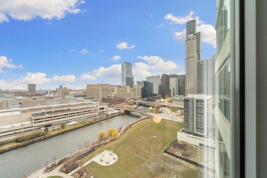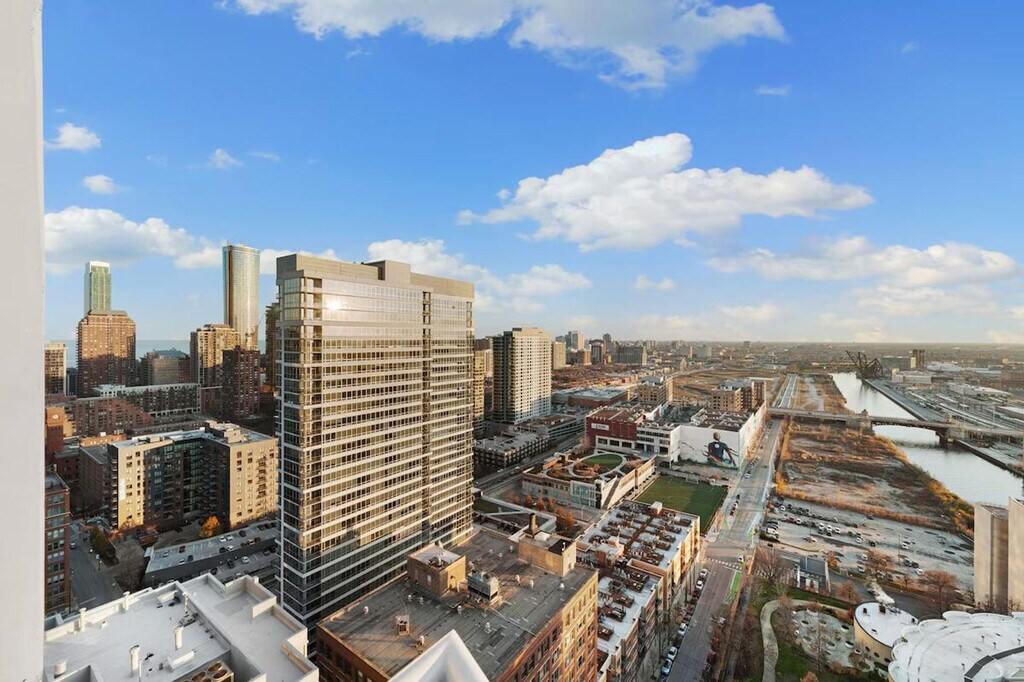Welcome to a one-of-a-kind luxury condo in Chicago, where modern interior design meets stunning city views and outstanding amenities. Feel at home in this peaceful neighborhood, free from city noise, with proximity to grocery stores and restaurants. Enjoy the convenience of a 24/7 concierge service, a fully equipped kitchen with appliances and cleaning products, an in-unit washer and dryer, fast Wi-Fi, and a smart TV. This condo offers breathtaking views of the city and the Chicago River, with a west-facing orientation that provides the best sunsets in Chicago. Equipped with all the essentials for a long-term stay, this space ensures comfort and convenience. Parking is available in the conveniently attached garage, with elevators that take you directly to the unit floor. The property management team charges $350 per month for a parking spot, which is the average rate for downtown Chicago. Nestled in a peaceful neighborhood, this condo is close to grocery stores and restaurants, providing easy access to daily necessities and dining options. Guests can access any of the building's grade-A amenities, including a swimming pool, rooftop lounge, full-size gym, indoor fireplace, lounge area, outdoor patio, and game room, using the key fob received during check-in. The building offers work-from-home rooms, providing a dedicated space for remote work with all necessary amenities. [SI]