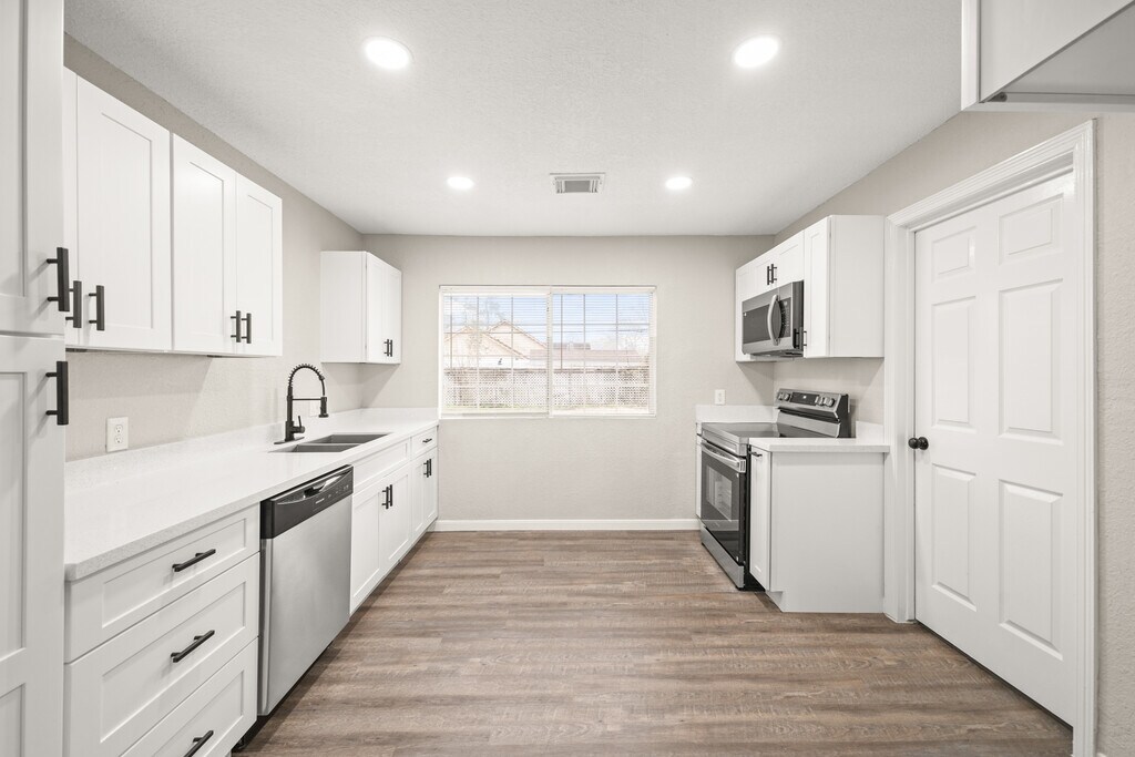 Welcome home to this beautifully updated 4-bedroom, 2-bath rental featuring modern finishes throughout. Designed with both style and comfort in mind, this home offers a clean, contemporary feel from the moment you walk in. The kitchen is equipped with stainless steel appliances, sleek cabinetry, and ample counter space—perfect for everyday cooking and entertaining. Both bathrooms feature modern stand-up showers with updated finishes, creating a fresh, spa-like atmosphere. Convenient layout, updated features, and move-in ready condition make this home an easy choice. Schedule your showing today and make this your next home!