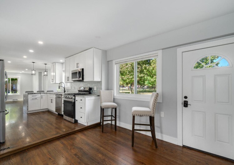 What A Stunning House for Rent! Free Garage! Call Apartment Guys. Minimum Credit Score of 680 is required. This beautiful four bedroom/2.5 bath house is fully remodeled with granite countertops, stainless steel appliances including a dishwasher and microwave. This House has three levels and laundry room and a full yard and patio for your private use. Prices are subject to change. **Photos may be of a similar unit or example of units.
