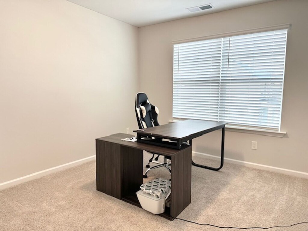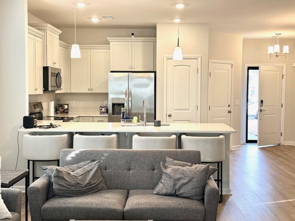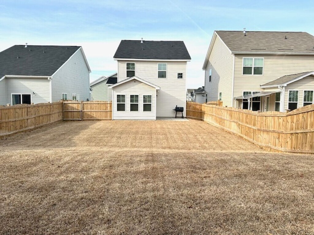Be the first to enjoy this stunning home built in 2025! This home features an open-concept floor plan with three spacious bedrooms and 2.5 bathrooms. The main level boasts 9-foot ceilings, luxury vinyl plank flooring, and a hardwood staircase. The kitchen is open to the great room and sunroom, making it perfect for both everyday living and entertaining. The kitchen features quartz countertops, a tile backsplash, bar top seating. Appliances include a self-cleaning stove, microwave, dishwasher, and garbage disposal. Upstairs, you’ll find three bedrooms along with a located laundry area. The primary suite is a complete with a dual vanity, garden tub, separate shower, and a large walk-in closet. Step outside to enjoy the large, fully fenced backyard and patio, perfect for outdoor activities or entertaining. Additional features include a 2-car garage, full yard irrigation, and a tankless water heater for endless hot showers. Resort style amenities: community pool, clubhouse, hammock garden, firepit and playground! 20 minutes to Fort Jackson, 7 minutes to Sandhills shopping center, 15 minutes Sesquicentennial State Park. *Home is not furnished*