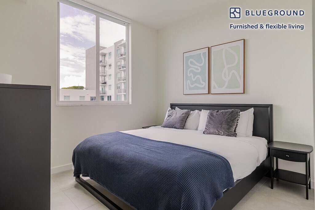 Show up and start living from day one in Miami with this comfortable one bedroom Blueground apartment. You’ll love coming home to this thoughtfully furnished, beautifully designed, and fully equipped Riverside home. (ID #MIA52) The advertised rate of $2,370/month is the lowest available price, based on a 3 month(s) and 29 day(s) stay with a move-in date of July 2, 2026. If you’re looking for a 1-year stay, the rate is $2,620/month. Rates vary depending on the duration of stay, season, and other parameters. For exact pricing and additional pricing components, please visit our website and enter your desired move-in and move-out dates. The rate is applicable when billed upfront; it can be higher if billed in multiple payments. Brokers are welcome to reach out. Were you looking for an unfurnished lease? Try Blueground instead and upgrade from unfurnished to furnished living: - Furnished at rates comparable to unfurnished - No setup or furniture costs - save thousands - Move-in ready - save time, just bring your suitcase Designed with you in mind Thoughtfully designed with bespoke finishes, modern furnishings, and a fully equipped kitchen, you’ll enjoy that “I’m home” feeling with this Blueground apartment. Whether you’re lounging in your charming living room streaming the latest and greatest entertainment on the smart TV or premium wireless speaker, or getting some well-earned rest on the superior quality mattress with fully stocked linens, you’ll fall in love with everything this Riverside apartment has to offer. This apartment also offers in-apartment laundry. Sleeping arrangements Queen Bed, 63in/160cm Amenities Building amenities unique to this one bedroom apartment include an on-site: - Dryer - Elevator - Swimming pool - Washing machine - Parking - Pets allowed Arrival and ongoing support The entire apartment is yours to enjoy! Throughout your stay, you’ll have access to our Client Experience team through the Blueground App. You can schedule additional cleanings, submit maintenance requests, and view our neighborhood recommendations with just a few taps. We’ll share all details upon confirmation of your stay. Other things to note Building amenities may have an extra cost. This Blueground apartment has flexible lease options, allowing you to book it for one month, a year, or more. Pets are welcome, though weight limits and breed restrictions apply and may incur fees. Parking is offered based on availability and is subject to a fee. We take great pride in ensuring every photo displayed is shot in our own units with our actual furnishings. That said, we regularly refresh our decor and furniture arrangement, which may differ from what’s pictured. [SI]