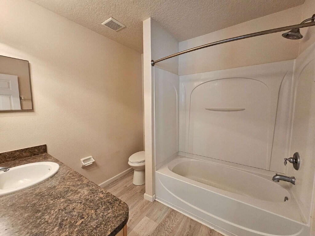 This beautifully updated 3 bedroom, 2 bath townhouse is ready for its next residents. Enjoy brand new LVP flooring throughout and fresh interior paint that gives the home a modern, clean feel. The main level offers 2 bedrooms, a full bath, living/dining area, and a kitchen with direct access to the backyard. A full-size washer and dryer are included for your convenience. Upstairs, the entire floor is dedicated to the primary suite, featuring double closets and a private full bath for your own retreat. Two reserved parking spaces are right outside your door. Nestled in a quiet neighborhood, this townhouse blends comfort, style, and practicality. No Section 8 or animals.