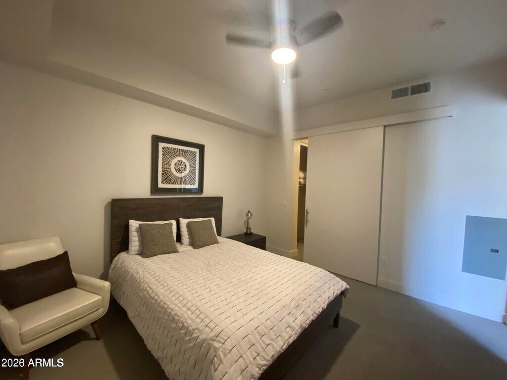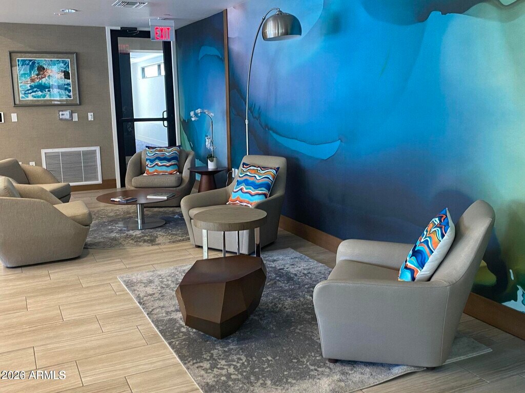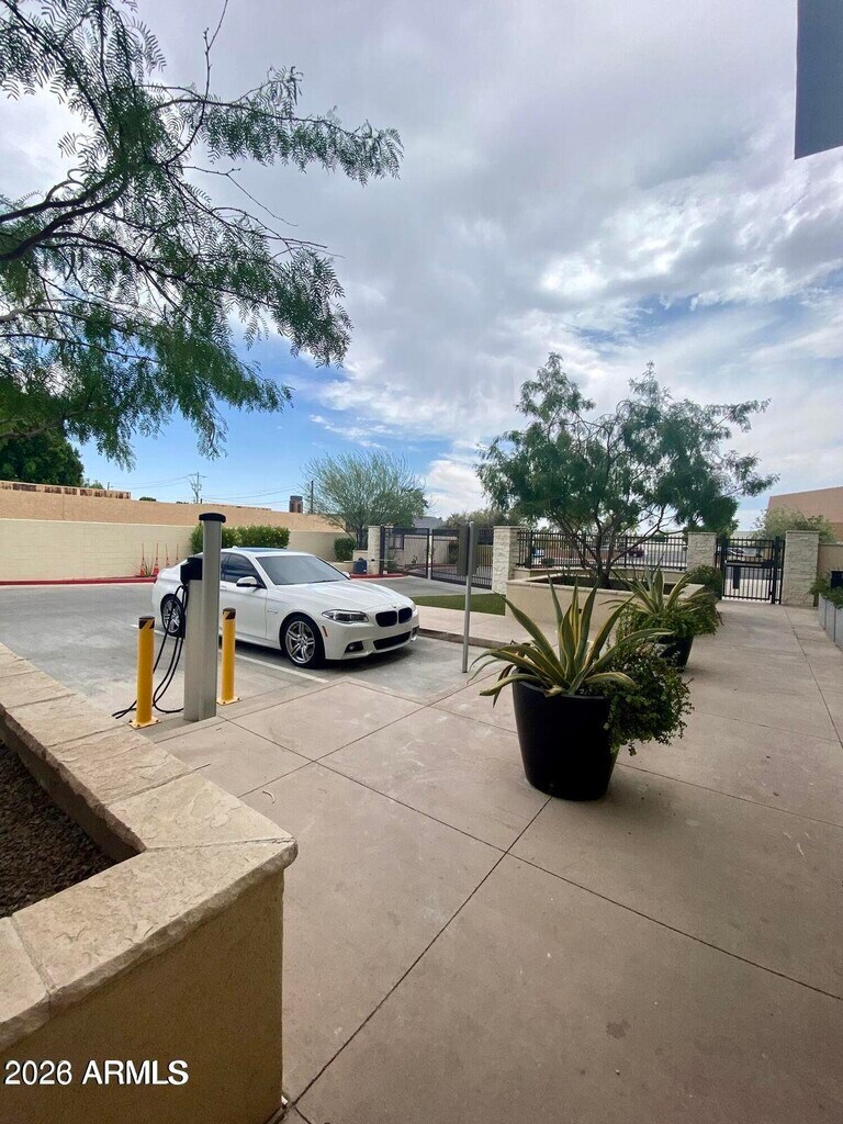 Experience resort-style living in the heart of Old Town Scottsdale! This beautifully maintained fully furnished,2-bedroom,2-bath split floor plan condo offers comfort,convenience,and unbeatable location. Enjoy peaceful views overlooking the community pool and gathering area from your private balcony. Inside,the home features 10-foot ceilings,gray tile flooring,and elegant white quartz countertops,creating a modern and spacious feel. The kitchen comes fully equipped,and the refrigerator,washer,and dryer are included for your private use. The unit also offers two underground parking spaces and elevator access within a secure gated community. Community amenities include pool & spa,fire pits & BBQ grills,fitness center,community gathering spaces.