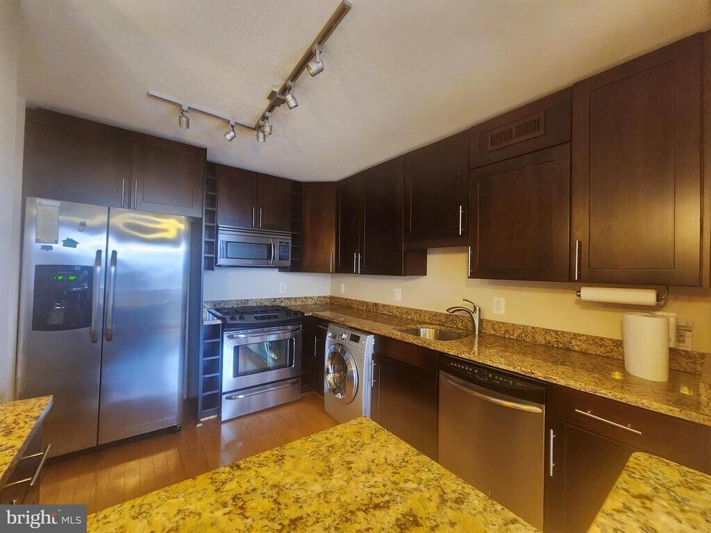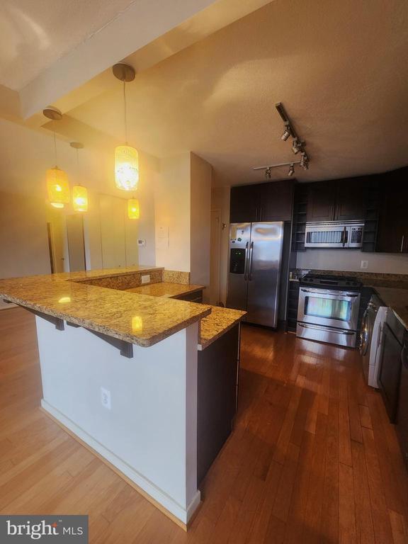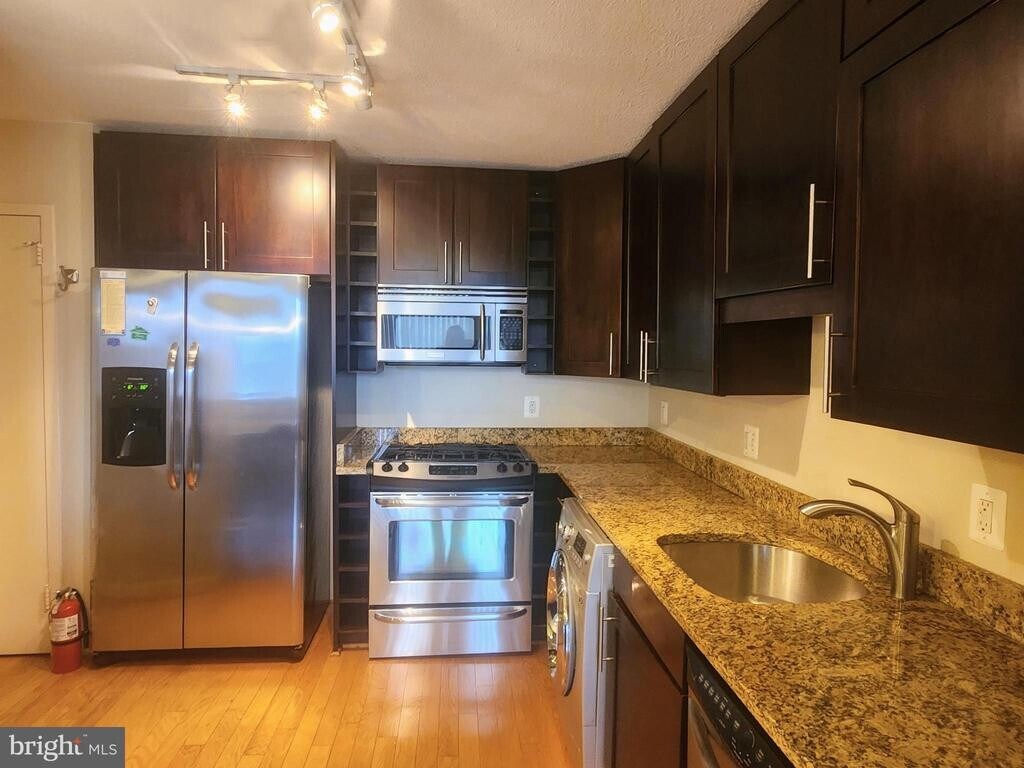 Enjoy Elevated Living at Takoma Overlook Welcome to this beautifully maintained one-bedroom, one-bath condominium located on the 5th floor, offering approximately 900 square feet of thoughtfully designed living space. Rich hardwood flooring flows throughout the living and bedroom areas, creating a warm and cohesive feel. Expansive windows invite abundant natural light, enhancing the bright and open atmosphere of the home. The spacious bedroom features wall-to-wall closets spanning the entire length of the room, providing exceptional storage. The kitchen serves as a true focal point, complete with custom wood cabinetry, granite countertops, stainless steel appliances, and a convenient combination washer and dryer. A generously sized island offers additional counter space and a perfect setting for casual dining or entertaining. All utilities are included, adding both value and convenience. Residents of Takoma Overlook enjoy access to a wide range of amenities, including an outdoor pool, tennis court, playground, dog park, community garden, and BBQ area, providing something for everyone. Ideally situated near shopping, dining, and grocery options, this home also offers excellent commuter access. Public transportation and major routes are just minutes away, including Silver Spring Metro Station, Takoma Metro Station, and Takoma-Langley Crossroads Transit Center. Pet Friendly - 1 pet welcomed! This is a wonderful opportunity to enjoy comfort, convenience, and community all in one place. Schedule your showing today.