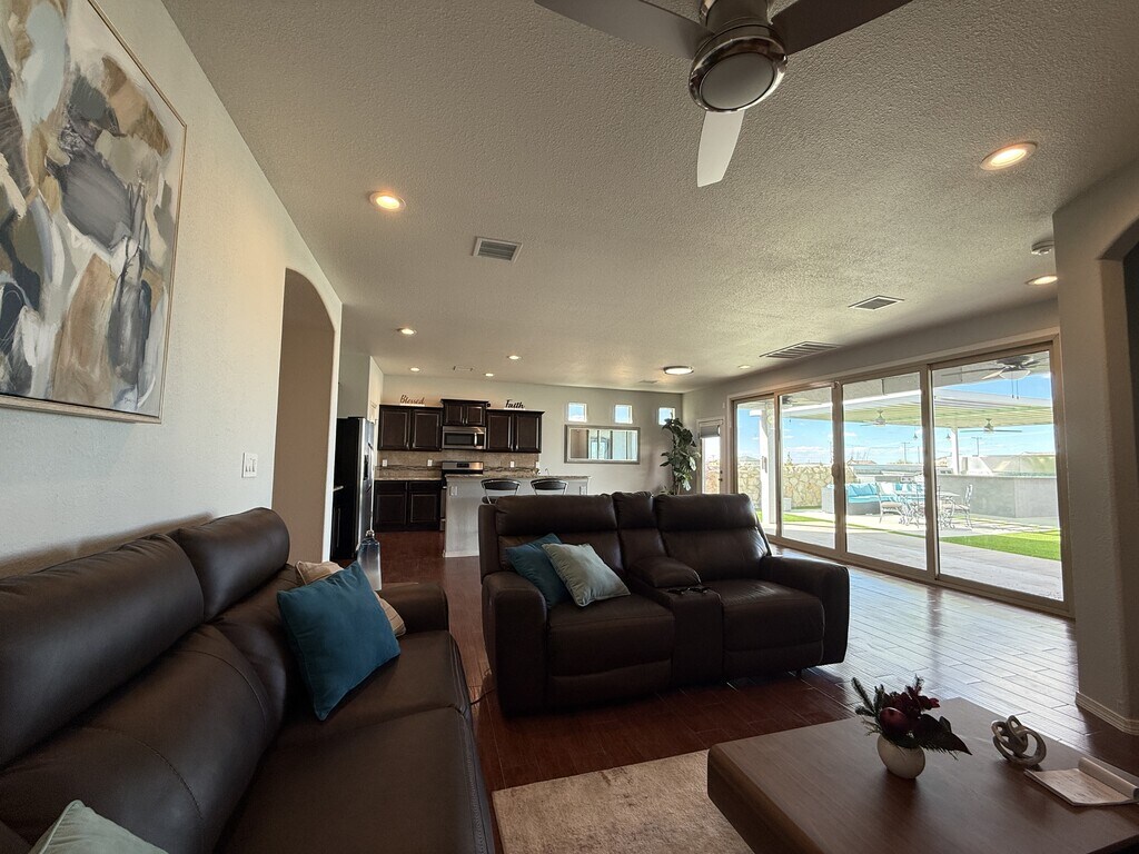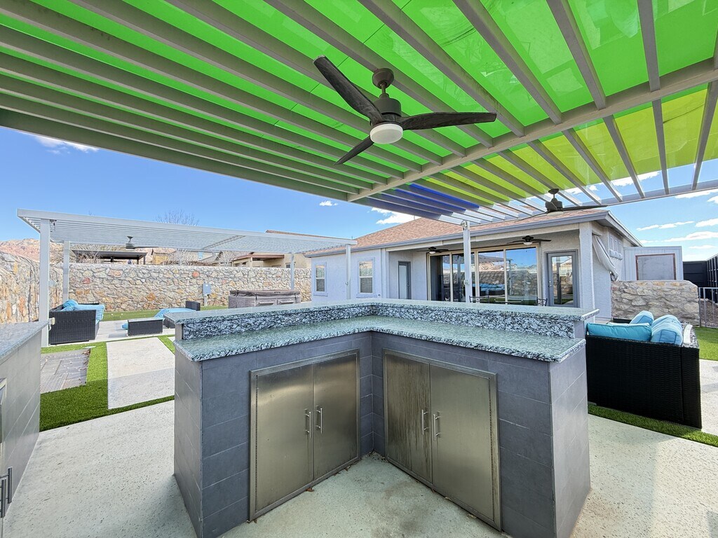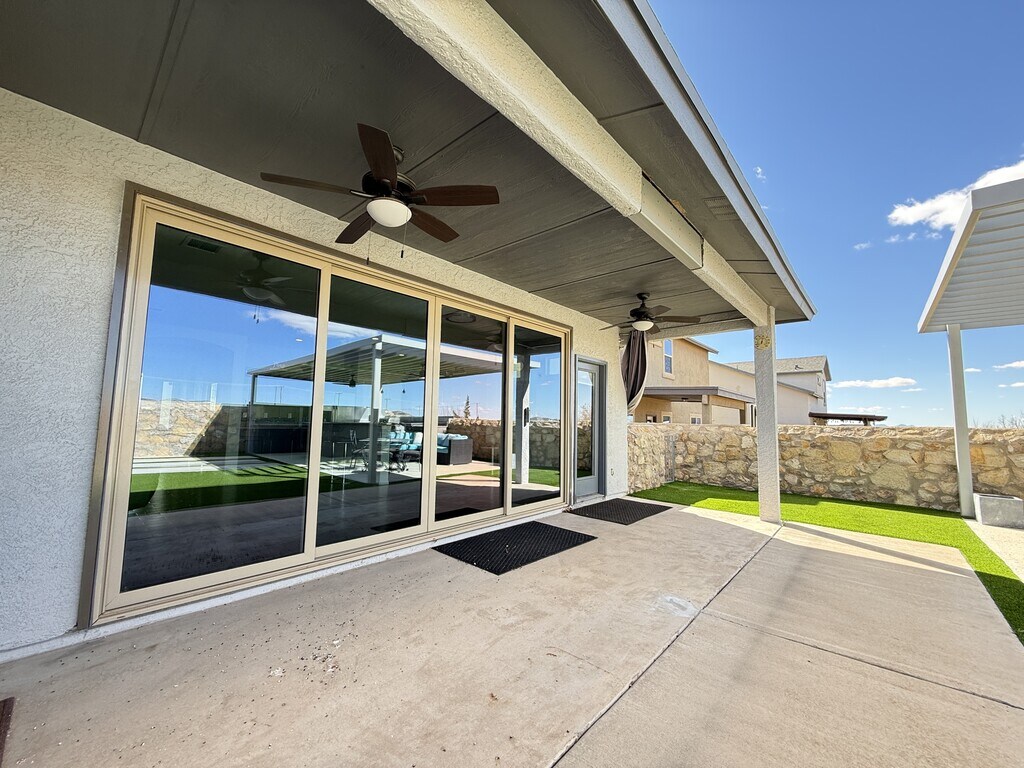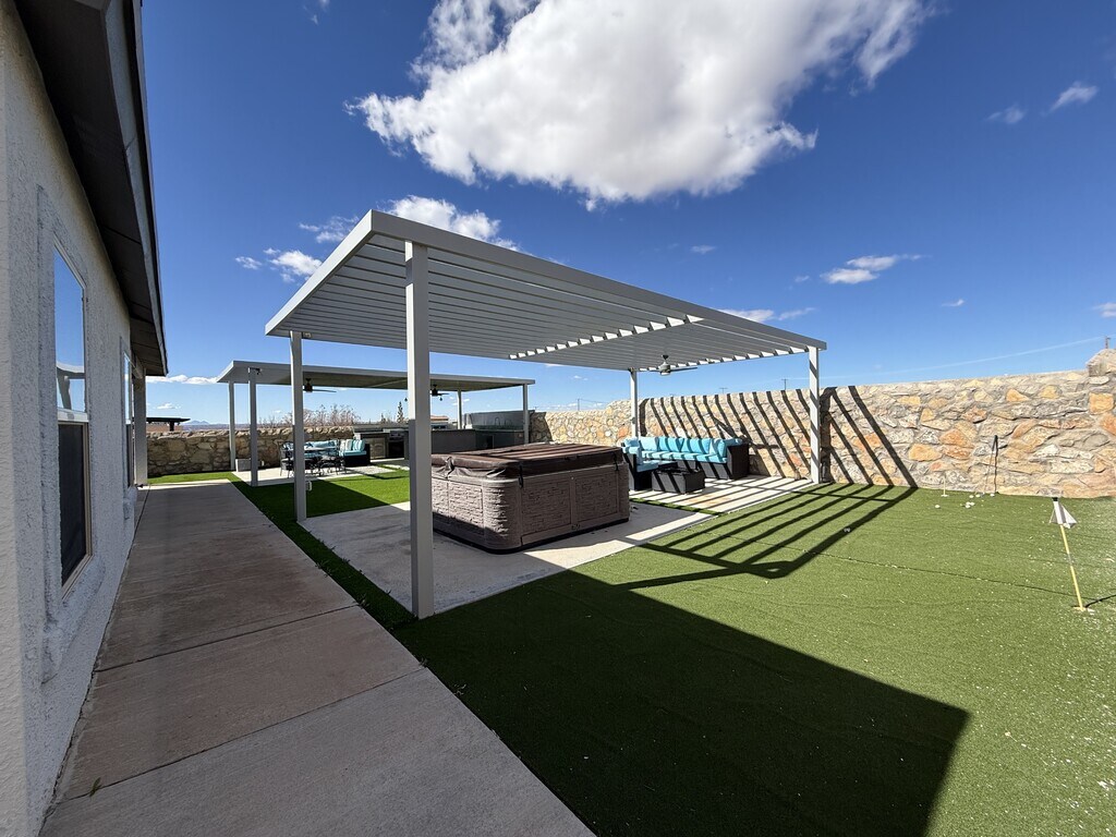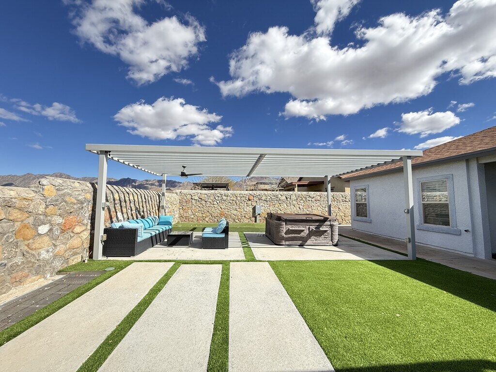 Welcome to your beach-in-the-desert retreat in West El Paso, TX. This rental home offers a true backyard oasis with gorgeous desert landscaping, stunning mountain views, an outdoor kitchen, and a jacuzzi tub—perfect for relaxing evenings and family gatherings. Inside, you're welcomed by a spacious open floor plan that seamlessly connects the kitchen, dining, and family areas, keeping everyone together. The entire home features ceramic tile throughout with no carpet. Enjoy four bedrooms, with one currently converted into an oversized walk-in closet that can easily be returned to a fourth bedroom. This home has SO MUCH MORE. With no neighbors behind, the home backs to peaceful desert scenery. Walking, jogging, and cycling trails along the breathtaking Franklin Mountains are nearby. A major hospital is approx. 1.5 miles away, outlet mall 2 miles, and restaurants and grocery shopping within 5 miles. Quick access to Loop 375 and I-10, both under 2 miles. PETS ARE NEGOTIABLE! Distances verified by Google Maps