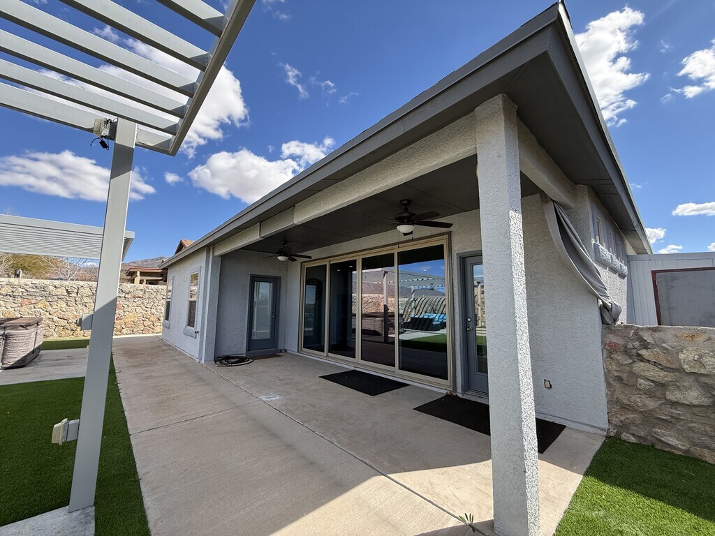 Welcome to your beach-in-the-desert retreat in West El Paso,TX. This rental home offers a true backyard oasis with gorgeous desert landscaping,stunning mountain views,an outdoor kitchen,and a jacuzzi tub—perfect for relaxing evenings and family gatherings. Inside,you're welcomed by a spacious open floor plan that seamlessly connects the kitchen,dining,and family areas,keeping everyone together. The entire home features ceramic tile throughout with no carpet. Enjoy four bedrooms,with one currently converted into an oversized walk-in closet that can easily be returned to a fourth bedroom. This home has SO MUCH MORE. With no neighbors behind,the home backs to peaceful desert scenery. Walking,jogging,and cycling trails along the breathtaking Franklin Mountains are nearby. A major hospital is approx. 1.5 miles away,outlet mall 2 miles,and restaurants and grocery shopping within 5 miles. Quick access to Loop 375 and I-10,both under 2 miles. PETS ARE NEGOTIABLE! Distances verified by Google Maps