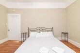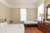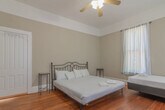 This beautiful, historic 1800's home is just a short stroll to downtown restaurants and attractions, and only 15 minutes to Fort Moore. Whether you are attending a military graduation, traveling for business, or just here to soak up the rich culture of Columbus, you will love this Southern classic! It's the perfect place to relax, explore, and fellowship. If you are traveling as a big group, book the apartment in the back, too. Together they sleep 15! This 2-bedroom 2-bathroom home is a perfect place to get away. The bedrooms are accented by gorgeous heart-pine floors and illuminated by large windows. Bedroom one has a queen bed, and bedroom two has two full beds and a trundle bed (twin with twin pullout underneath). Enjoy a movie or sporting event in the living room. The couches center around a unique fireplace that no longer works, but it adds to the historic character of this great home! Cook up any meal in the fully stocked kitchen and enjoy outside on the rocking chairs and porch swing! During your stay, you will have full access to the front unit; the back unit is rented separately. Inquire if you are interested in renting both together. A pack 'n play travel crib is available upon request. Pets are permitted at this home. You must notify us if you plan to bring a pet to the home and will be charged a non-refundable fee. You will be responsible for cleaning up all evidence of your pet at the property, including fur inside the home and waste from the yard. This historic home is located in Uptown Columbus within walking distance to Broadway, the River walk, Columbus State University, and the Spring Opera House. Enjoy all of the nearby bars, restaurants, and coffee shops. This home is a quick stroll to the downtown area. Fort Benning is just a short drive or Uber away! Guests must be at least 21 years of age to rent this property. Smoking is prohibited, and if our cleaning crew reports any signs of smoking cigarettes, vapes, e-cigs, pipes, etc. (smell, ash, etc.) in or around the home, an automatic $500 damage charge will be incurred. The same charge applies if cigarette butts are found outside of the home. If marijuana is smoked in or around the home a $500 fee will be charged, and details about the reservation may be turned over to the appropriate authorities. Parties are prohibited at the home. Other events are permitted at the home only with our prior approval. To be courteous to our neighbors, we ask that you respect quiet hours between 10 PM and 7 AM. If you violate quiet hours and disturb the neighbors, we will cancel your reservation; you will be required to leave the property immediately and you will not be eligible for any refunds. We may monitor noise with exterior cameras and noise monitoring technology. You will be responsible for any damage to the home or its furnishings during your stay. Please bag all trash and place it in the bins provided. There is a $100 charge for third party trash removal if an excessive amount of trash is left at the property. Registration Number: STVR-11-23-7559 [SI]
