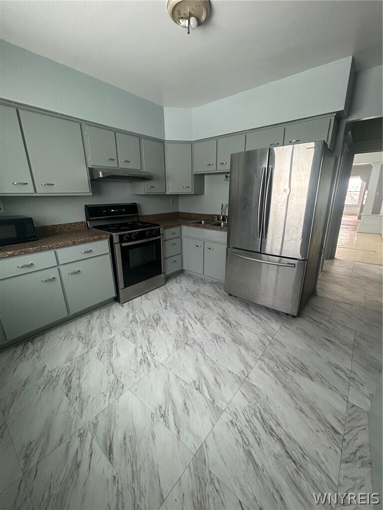 1st floor,3 bedroom apartment with open layout and sunlit front room. Features garage and driveway parking. Kitchen appliances included.