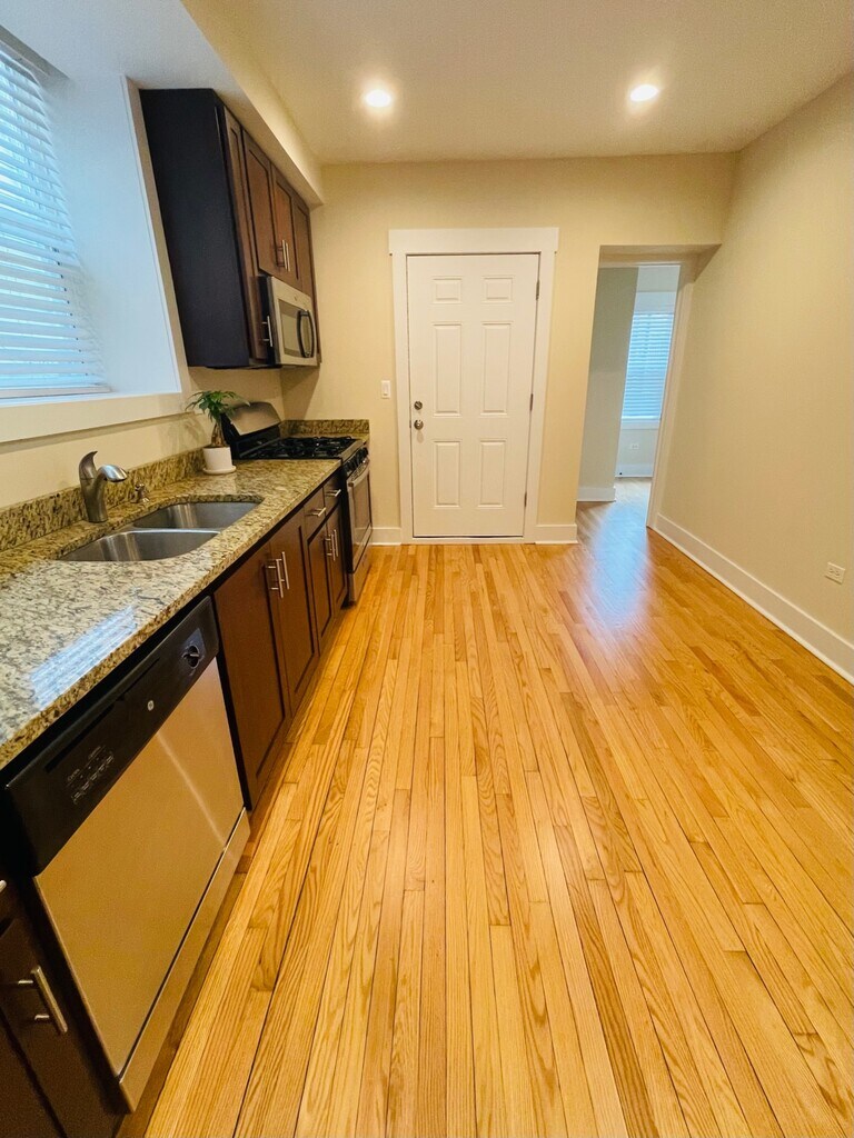 Precioso apartamento renovado ubicado en Rogers Park. Esta espaciosa unidad del tercer piso tiene toneladas de luz natural. 3 dormitorios más oficina/mueble adicional. Dos baños completos, incluido un baño privado en el dormitorio principal. Las características de la unidad incluyen lavadora y secadora de tamaño completo, cocina actualizada con encimeras de granito, lavaplatos y despensa, y un amplio armario. Opciones de estacionamiento disponibles