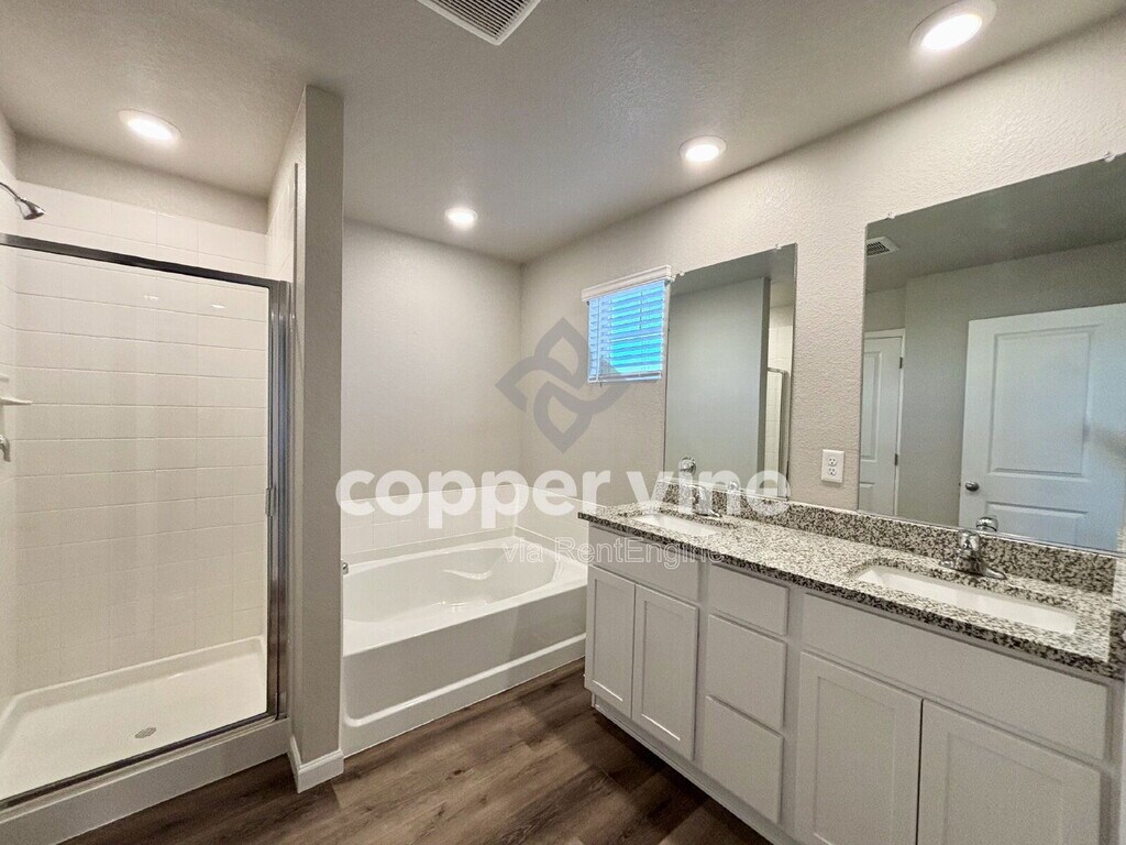 Don't miss out on this fantastic house, ideally situated on a corner lot with great views. This spacious home features 4 bedrooms and 2.5 bathrooms, along with an attached two-car garage. The property boasts a large, fenced backyard, which has full landscaping and sprinkler system front and back yard. The home comes fully equipped with all appliances, including a refrigerator, stove, microwave, dishwasher, washer, and dryer. It also features granite countertops throughout and central air conditioning for your comfort. Upstairs, the master bedroom offers a luxurious five-piece master bath and a large walk-in closet. The hall bathroom includes double sinks, and there is a small loft area perfect for a den or additional living space. Applications are available on our website . Please note that pets are possible with approval.