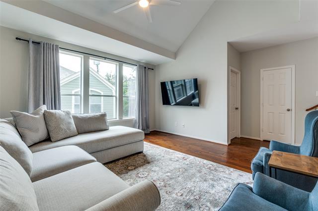 Charming East Dallas townhouse just south of Gaston and Grand. Easy access to White Rock Lake, Lakewood, Arboretum and Casa Linda! Spacious and spotless with 2 bedrooms, 2 baths and a large second level living, dining and kitchen space with a vaulted ceiling. Fresh paint, new carpet, stainless and granite in the kitchen, engineered wood floors on second level living & dining. Split bedrooms with Primary on third level, second bedroom on first level. Great light and the privacy of an end unit. Private 2 car attached garage.
