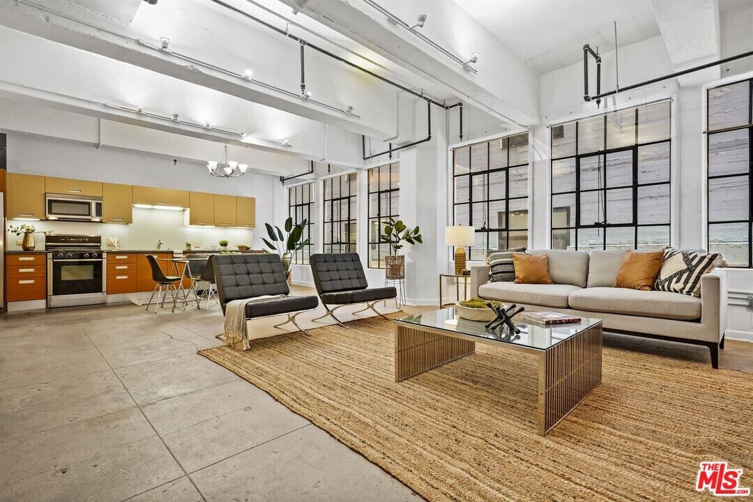 Live/Work Loft in the iconic Cornell Building located in the Fashion District's Santee Village. This SouthWest-facing unit is very bright and features concrete floors, a wall of original steel-framed windows, and 10' ceilings giving the cool industrial look. The modern kitchen has a gas range, stainless appliances, Italian cabinets, and a large island. Features a large bathroom with a soaking tub, and in-unit laundry. Santee Village offers many amenities spread among different buildings, such as 24-hour security, rooftop swimming pool, spa, golf range, BBQ Area, basketball court, fitness center, and a convenient food court and market. From the roof, you get 360-degree views spanning the mountains to city lights. Situated in the evolving Fashion District, this walkable neighborhood is home to acclaimed restaurants and shops. MLS# 25626679