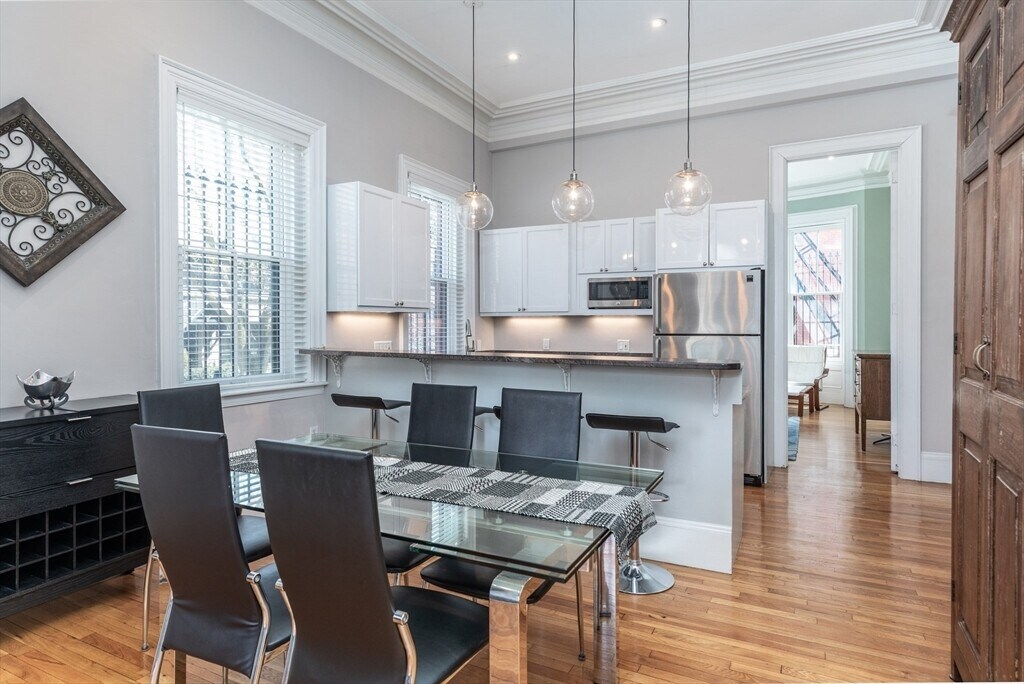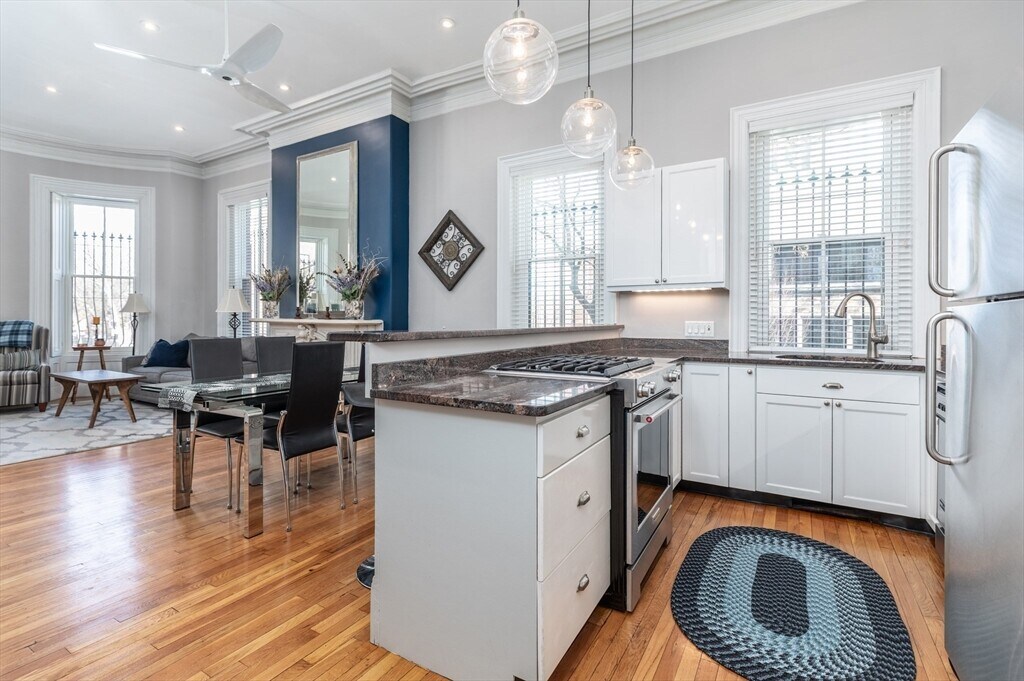 Stunning parlor level 1bed offers quintessential South End brownstone character,with soaring ceilings,grand windows and 3 exposures for natural light throughout the day. Open kitchen,living and dining layout allows for seamless flow for entertaining and layout options. High end kitchen features gas cooking,breakfast bar and high end appliances. A spacious bedroom with a queen size bed window,plenty of space for office desk or at home fitness and walk-in closet. Deeded off street parking,in-unit washer and dryer,basement storage,and a 24hr security system in place. MLS# 73486260