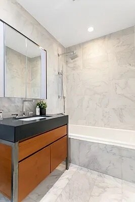 Residence 27D is an oversized high floor studio with a home office. This junior one bedroom features bright southern exposures, wide-planked oak flooring, 10' ceilings, and oversized windows. Enjoy the Italian Boffi kitchen with stone counters, a convection oven, a pantry, and an island bar with storage. The marble bathroom has a separate shower and tub. Washer/dryer in the unit. 75 Wall Street defines world-class luxury with a full-service lifestyle and an abundance of amenities. Designed by award-winning Rockwell Group, the 42-story tower, located at Wall and Water streets, perfectly pairs a collection of 346 luxury residences with the Hyatt-managed Andaz Wall Street to offer the best in modern city living. The luxury condominiums offer dramatic 360-degree views of downtown Manhattan from the upper 24 floors of the hotel. Residents have access to the integrated hotel services including room service, catering, housekeeping, on-site parking, and valet laundry, as well as a concierge. Building amenities include 24-hour doorman, 24-hour gym with Peloton bikes, 360 degree terrace, terrace lounge, club lounge with billiards, and children’s playroom. Enjoy shopping at Brookfield Place with prominent brands such as Le District, Saks Fifth Avenue, Hermes, and Burberry. With easy access to many subway lines and the Fulton Center, to major food markets and restaurants like Eataly, Nobu, El Vez, Blue Smoke, North End Grill, and many more. The South Street Seaport is a short distance away with its many shops and eateries situated on the East River with stunning views of Brooklyn and Manhattan’s historic bridges. Tenant-owed Fees: - Move-In Deposit: $1000 - Move-In Fee: $500 - Application Processing Fee: $700 - Digital Document Retention Fee: $112.50 - Consumer Report Fee: $75 Rental Terms: Monthly: $4,200