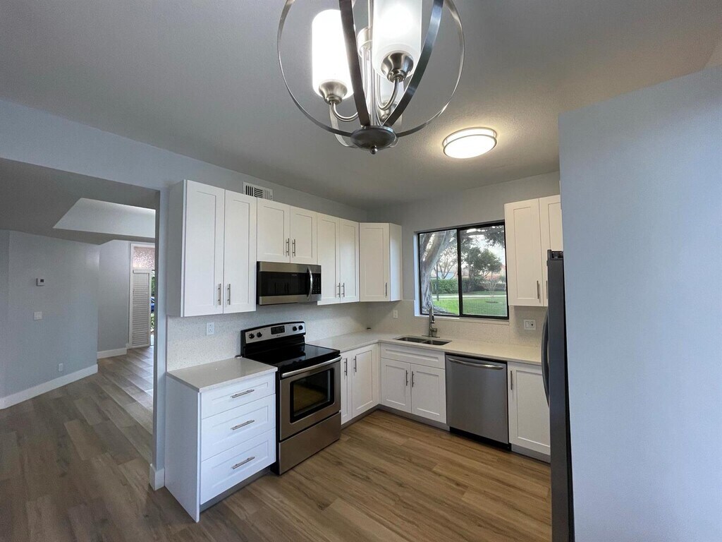 Beautiful 2-Bedroom, 2-Bathroom Corner Unit Condo in Parkland ! This split-floor-plan home offers privacy and comfort, complete with an attached single-car garage and tranquil lake views. Recently updated with sleek vinyl flooring throughout, the modern kitchen boasts quartz countertops, stainless steel appliances, and ample storage. The expansive living and dining area is perfect for entertaining, while the large screened-in balcony provides a serene retreat. Additional features include generous closet space, a separate laundry room, and a peaceful setting just minutes from dining, shopping, and major highways. Located in an A+ rated school district—ideal for families or professionals