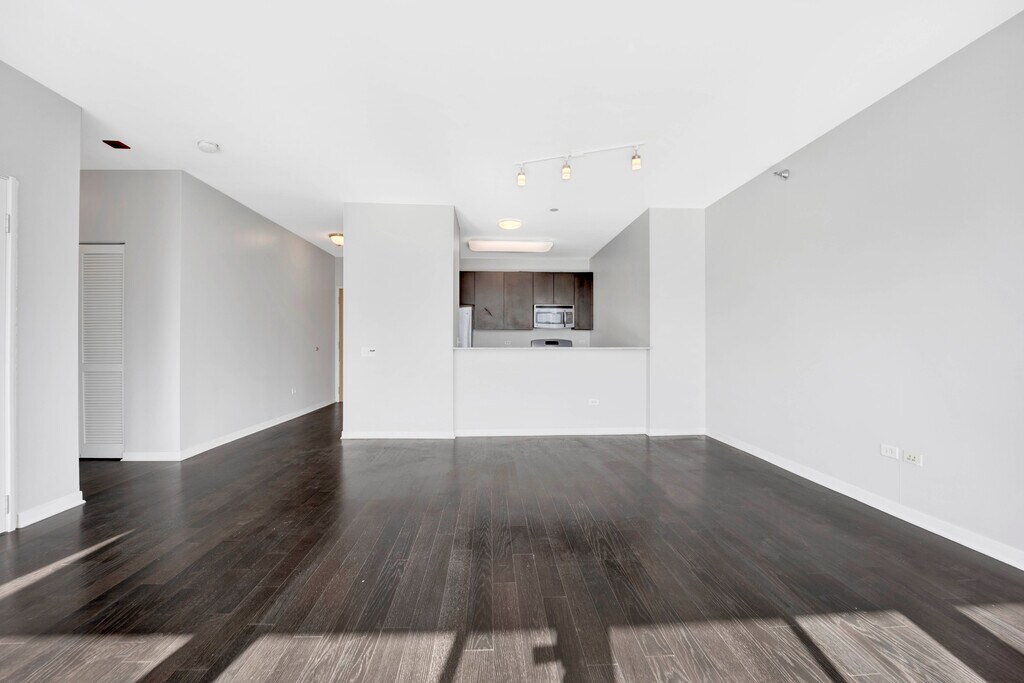Move to River North and have plenty of elbow room in this oversized one bedroom with garage parking included! The newer-construction unit spans over 900 square feet, offering hardwood floors in the living room and floor-to-ceiling windows. The adjacent, open kitchen comes with stainless steel appliances, granite countertops, a microwave, dishwasher and a trendy tile backsplash. The island is topped by overhead lighting, and has room for a handful of barstools, plus living space to accommodate a dining table, overstuffed sectionals, large living room furniture and more! There's laundry-in-unit, and the carpeted bedroom (which is now painted white) can accommodate any size bed. Building amenities include a 24- hour doorman, a pool, sundeck, fitness area, bike room and business center. The walkable location is a short stroll from shopping, restaurants and nightlife. In addition to a garage parking spot, a storage locker is also included.