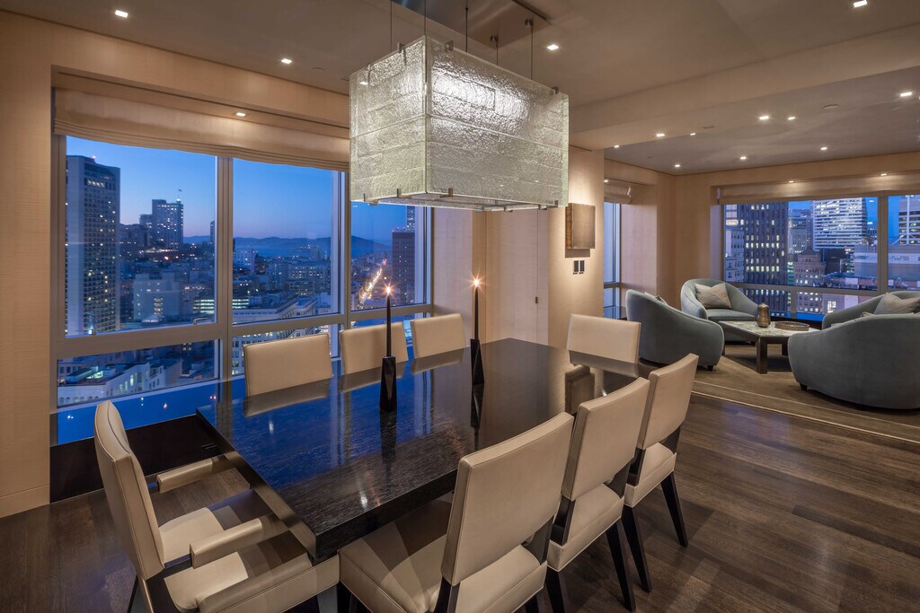 Created over the course of four years, designed and constructed with an unparalleled attention to detail, Residence 32CD at the Four Seasons Private Residences in San Francisco was designed for the most discriminating of owners.Presenting an unparalleled opportunity to acquire an asset totally re-invented and finished beyond the highest imaginable standard, Residence 32CD comprises a living/dining area, a superbly equipped Miele kitchen, a sensuous master suite, an office, an en-suite guest bedroom, a home theater, an additional bath and powder bath, plus a laundry room – all with access to all the amenities available to a select group of owners of the Four Seasons Private Residences.As in the Gulfstream G650 or a Perini Navi yacht, every aspect of this luxurious residence was deliberately designed or chosen to be uniquely the best. A serenely composed collection of spaces incorporating astounding construction and technological values, Residence 32CD was originally two apartments, joined under a plan conceived by San Francisco architect Fu-Tung Chang and brought to final fruition by the globally recognized interior design and architecture firm ODADA. Essentially a new structure within the original hi-rise volumes, the complete reconstruction and soundproofing of the over 3,500 square foot residence was undertaken by Black Mountain Construction &; Development under the guidance of the acoustical management experts at Charles Salter + Associates.One of the most extraordinary aspects of Residence 32CD is the completely soundproofed home theater by Audiovisions– uniquely, a cinema in the sky– incorporating Dolby Atmos, Kaleidescape Entertainment, and Stratus systems for an unparalleled entertainment experience, acoustically isolated from the rest of the condominium. As expected, the technology includes a sophisticated Savant system, the gold standard in home automation, in a project that required hundreds of highly skilled man hours plus a meticulous level of oversight daily– from the client himself, the engineers, the designers and the contractor.Throughout Residence 32CD the ceilings, moldings and light coves are fabricated from tinted, hand-troweled plaster, reviving an ancient Moroccan technique known as Taddekh in the most contemporary way, hand-polished with smooth stones and eliminating the use of paint anywhere in the home.