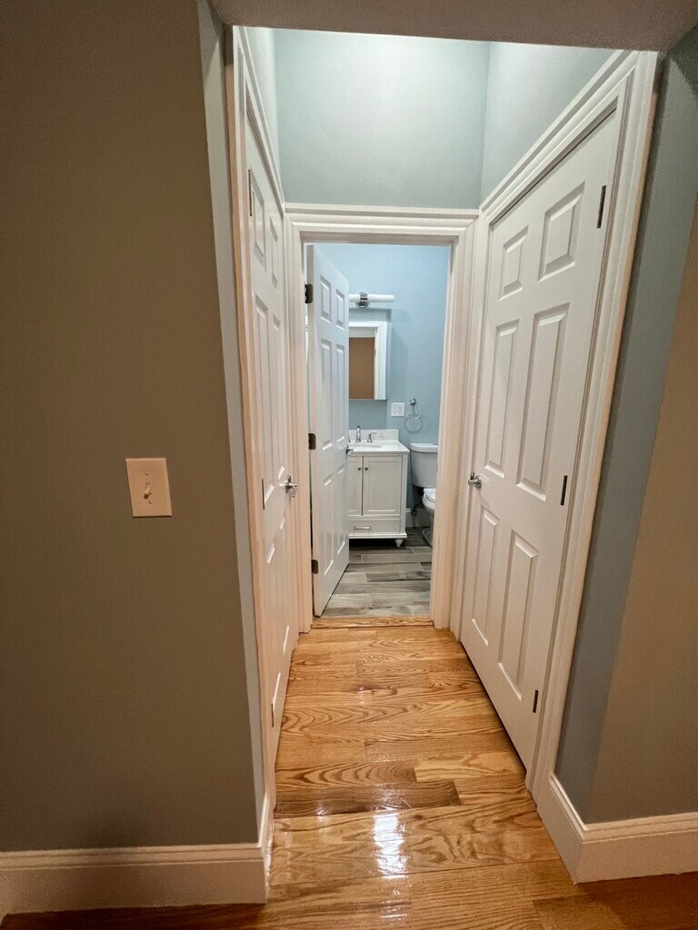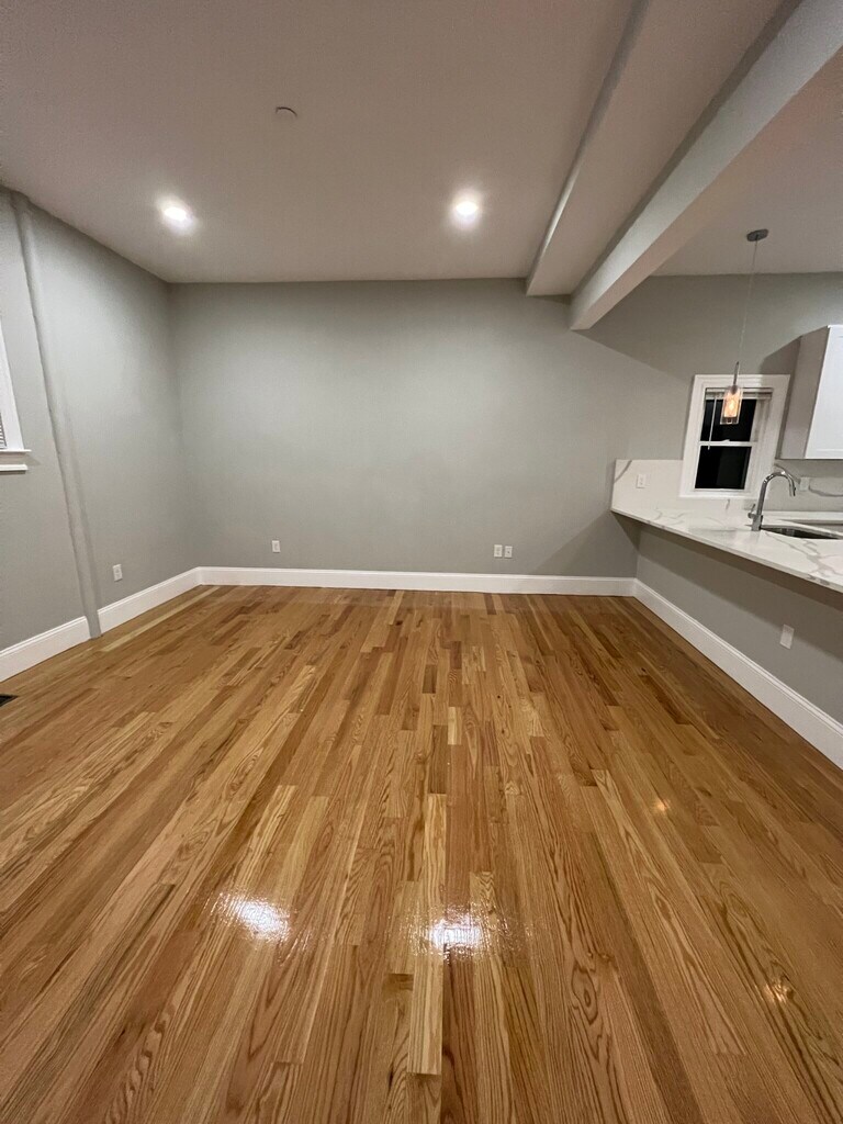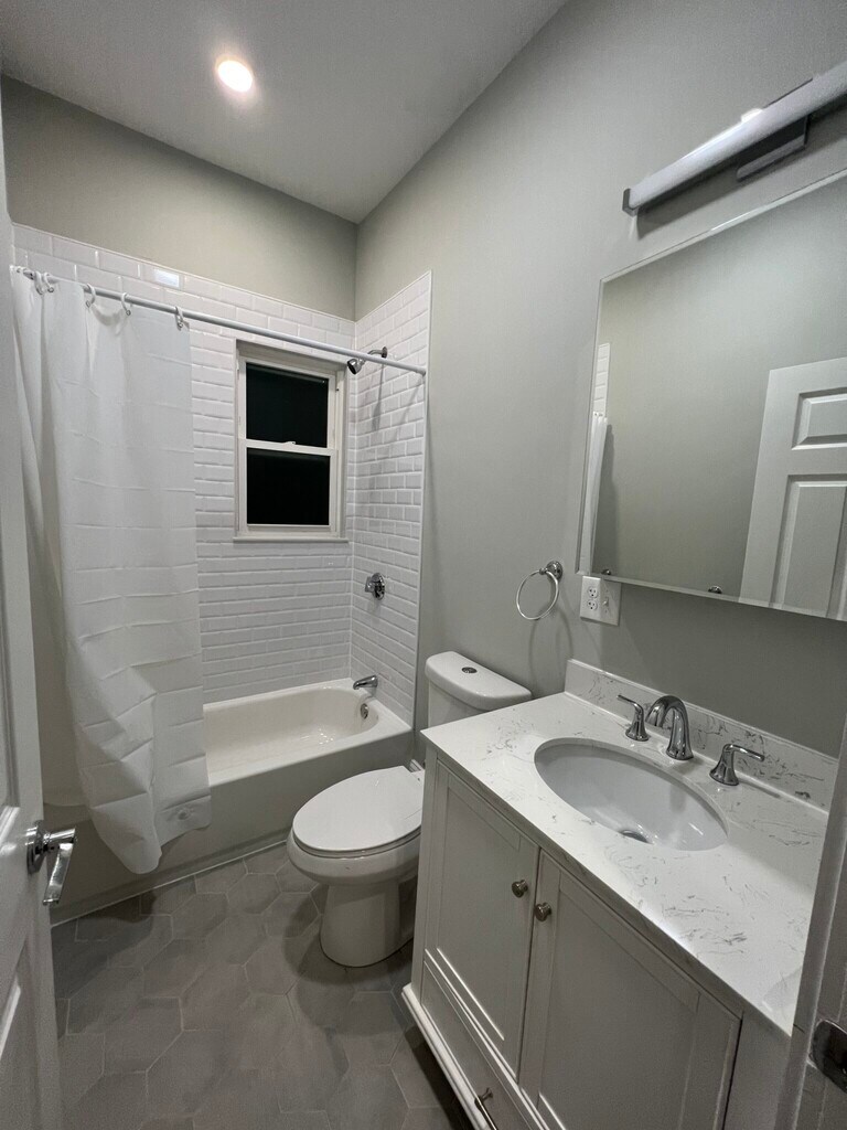 East Somerville/Sullivan Square Closest trains = Sullivan Square (Orange Line) or East Somerville (Green Line) 2 bed/2 bath (second floor, left-side) Modern eat-in-kitchen with new stainless-steel appliances Newly tiled bathrooms Refinished hardwood floors throughout New central heating and AC w/ NEST thermostat Gorgeous white-granite counters In-unit laundry (new washer/dryer machines) Spacious living room Street parking with city permit High ceilings