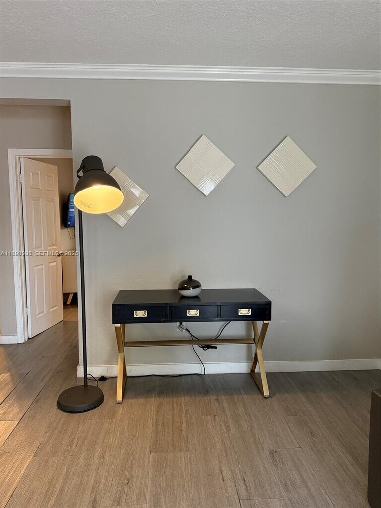 1 BD, nestled within the vibrant North Shore neighborhood.Embark on leisurely strolls or invigorating bike rides along the Beachwalk, & utilize the complimentary trolley service for effortless neighborhood exploration.Inside, discover a tastefully appointed space boasting wood-toned flooring,a designated dining area,a modernized kitchen w/ ample cabinetry,impact-resistant windows & a spacious