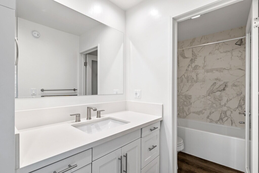 Remodeled Cross Creek Village 1bd/ 1ba unit features updated flooring, recessed lighting and a custom kitchen, bathroom, cabinets and closet. Unit has stainless steel appliances, upgraded airport sound proof windows, USB outlets, dimmers and a balcony. Unit is close to parking, elevator and laundry. Other amenities include 24/7 security, a clubhouse, mailroom, gym, sauna, pools, spa, picturesque grounds and tennis, basketball and Pickleball courts. One underground parking space is included. HOA allows one dog (up to 20 lbs) or cat. Unit comes unfurnished.