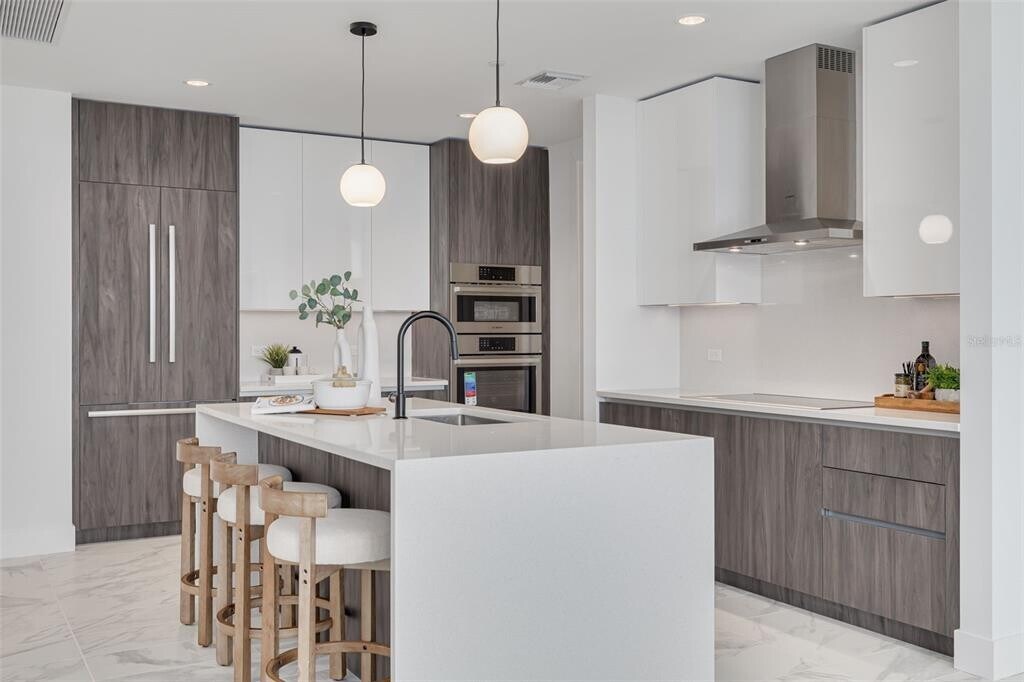 Experience the pinnacle of luxury living at The REFLECTION,a stunning FULLY FURNISHED two-bedroom plus den,two-and-a-half-bathroom condo located in the heart of downtown St. Petersburg. This residence offers breathtaking views of the city skyline and Tampa Bay,blending sleek modern design with unparalleled comfort. The spacious great room is a highlight,featuring floor-to-ceiling windows and sliding glass doors that lead out to your private terrace,expanding the living space and bringing the outdoors in. The interior is adorned with gorgeous porcelain flooring and soaring 10-foot ceilings throughout the main living areas,creating an open and airy atmosphere. The gourmet kitchen is a chef’s dream,complete with quartz countertops,a sizable island with waterfall edges,and high-end,panel-ready Bosch stainless steel appliances. The kitchen sink window perfectly frames the picturesque views,adding to the beauty of the space. The expansive primary suite offers a luxurious retreat,featuring a European wet room with upgraded plumbing fixtures,along with both a reach-in closet and a walk-in closet for plenty of storage. The second bedroom is equally spacious,and the large den provides versatile space,perfect for a home office or an additional bedroom. Residents of REFLECTION enjoy exclusive access to a 12,000-square-foot amenity rooftop,where they can take advantage of a fitness center,community room,hot tub,and a heated saltwater pool with panoramic views of the city. The rooftop also boasts an outdoor kitchen and wet bar,perfect for entertaining or relaxing in style. The building is equipped with advanced features including the highest quality electronic air filtration systems in each residence and common areas,a water softening system,and touchless doors throughout. REFLECTION has demonstrated its durability by withstanding the recent impacts of Hurricanes Helene and Milton,showcasing the superior construction and materials used. Situated in the heart of downtown St. Petersburg,The REFLECTION is just moments away from dining establishments,boutique shops,and renowned museums and galleries,making it the ideal location for those who want to experience the best of the city. MLS# TB8425864