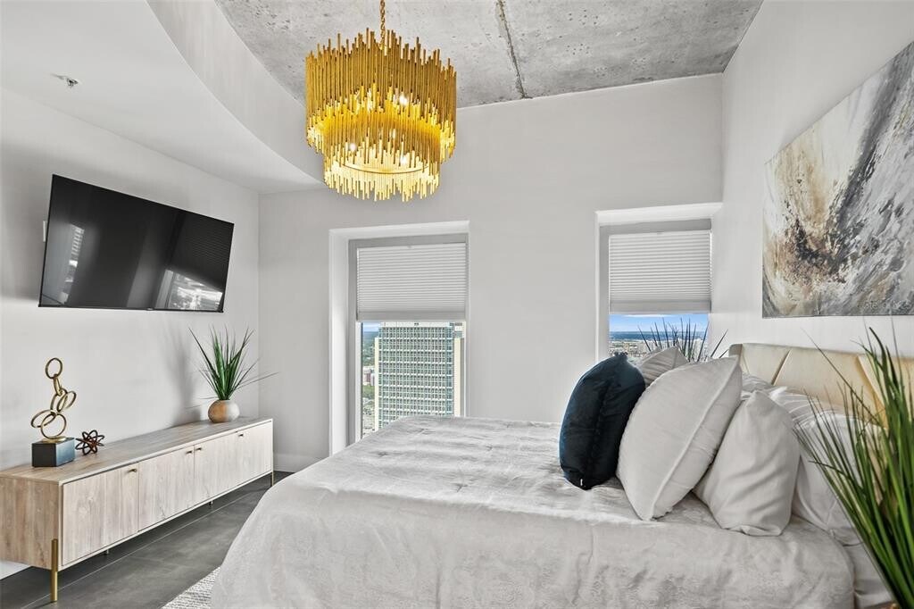 Welcome to this luxurious high-rise condo nestled in the heart of downtown Tampa. This stunning residence offers a perfect blend of modern sexy elegance and breathtaking city views. With its sleek design and premium finishes,this condo exudes sophistication and style. Over $300K in upgrades! Step into the spacious living area,adorned with floor-to-ceiling windows that flood the space with natural light and showcase the vibrant cityscape. The open-concept layout seamlessly connects the living,dining,and kitchen areas,creating an ideal space for entertaining guests. The gourmet kitchen is a chef's dream,featuring top-of-the-line appliances,sleek cabinetry,and a large counter bar that is perfect for entertaining. Prepare culinary masterpieces while enjoying the panoramic views of the city skyline. Retreat to the master suite,a private oasis boasting a serene ambiance and breath-taking views. The en-suite bathroom offers a spa-like experience with its luxurious fixtures,a spacious double vanity,and a walk-in shower. Lots of customization throughout the design process making this one of a kind unit a remarkable offering. The secondary bedroom features a built in murphy bed w/ custom paneled wall. The en-suite for the secondary bedroom boasts plenty of space & features a sleek design with curated pieces even for the most discerning buyer. Residents of this high-rise condo enjoy exclusive access to a range of amenities,including a state-of-the-art fitness center,a sparkling swimming pool,and a stylish clubhouse area. Additionally,the prime location provides easy access to the vibrant downtown scene,Curtis Hixon Park where you can enjoy various festivals,entertainment,& so much more. With an array of dining and entertainment options just steps away this is the perfect opportunity to call this one of a kind unit yours. Experience the epitome of urban living in this high-rise condo in the growing downtown Tampa. Don't miss the opportunity to make this place your new sanctuary. MLS# TB8478489