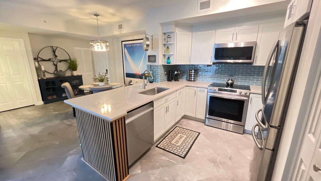 Beautifully renovated and fully furnished 2-bedroom,2-bath condo featuring a desirable split floor plan and convenient first-floor access. Enjoy brand-new flooring,elegantly updated bathrooms,and an open kitchen with stainless steel appliances,modern cabinetry,and generous counter space. The bright and inviting living space offers a stylish yet comfortable atmosphere,perfect for relaxing or entertaining. Located in The Courtyards at CityPlace,steps from premier dining,upscale shopping and vibrant nightlife. Resort-style amenities include a pool,hot tub,fitness center,and onsite management. Minutes to the Kravis Center,Convention Center,PBI Airport,and major roadways. Minimum 3-month lease. Short-term rentals available at $4,500/month. Available furnished or unfurnished MLS ID B26021466